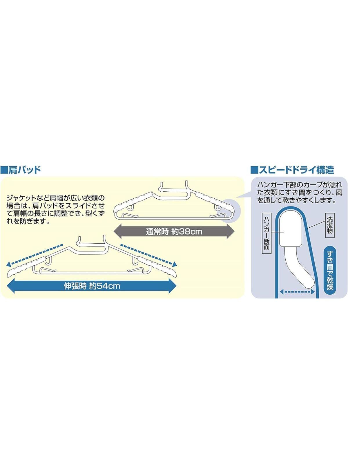 ●スライド式の肩パットつきで、シャツのサイズに合わせて肩部分が伸びます(通常時約38cm 伸張時約54cm)。