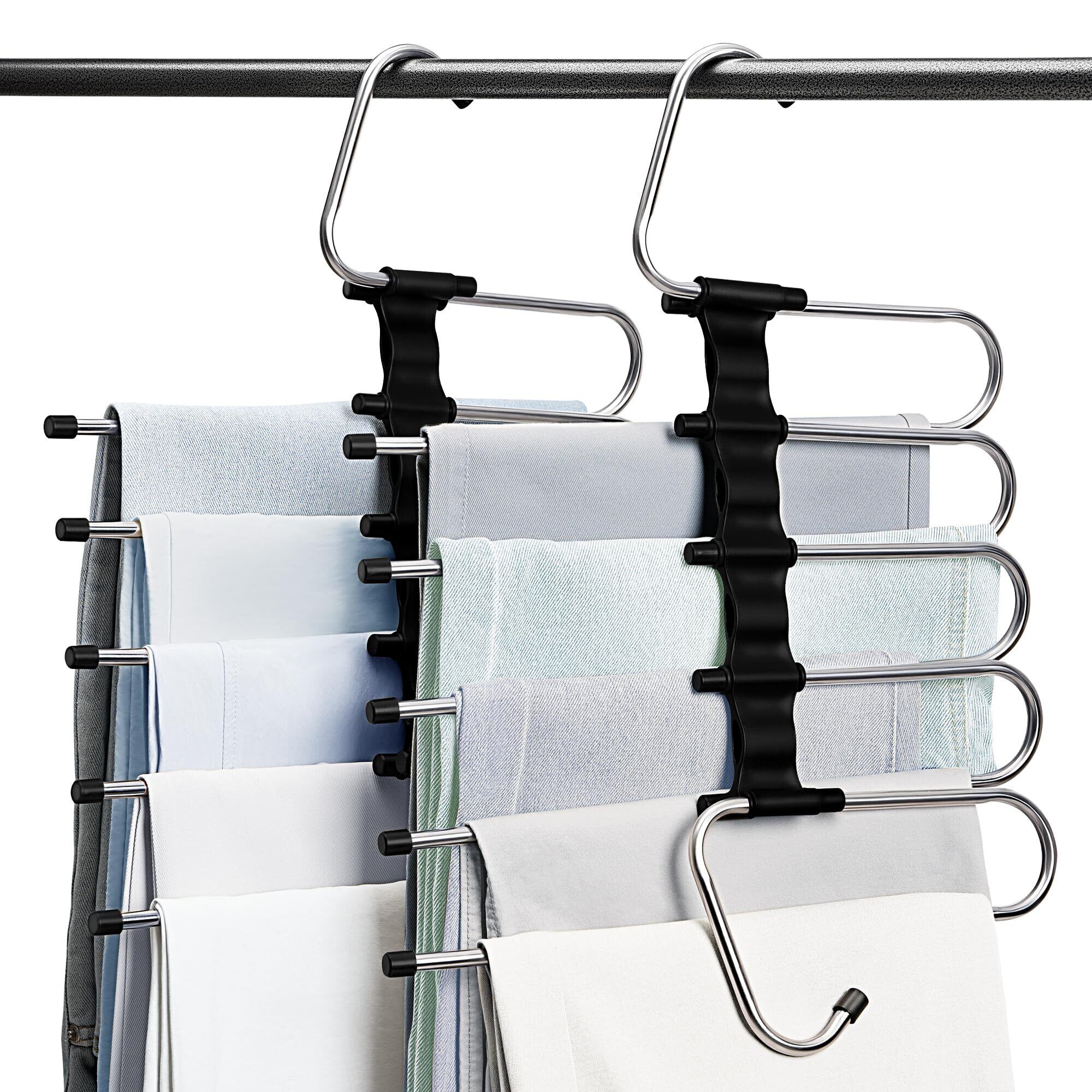 \【◆【SNSで話題×収納力が5倍アップ】 ズボンハンガー 2本組 チチロバ(TITIROBA) パンツ スラックスハンガー ステンレス 省スペース 5連 縦横両用 折り畳み 跡がつかない すべらない マットブラック!】/