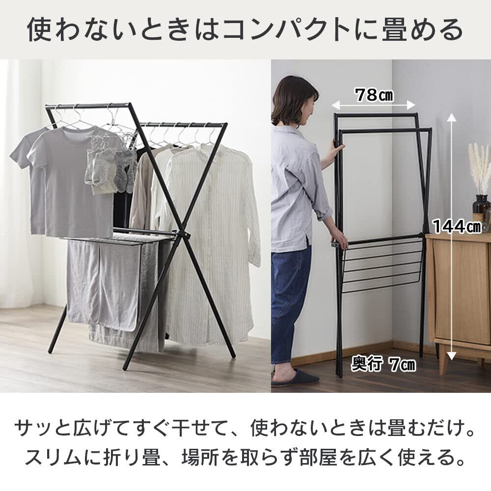 サッと広げてすぐ干せて、使わないときは畳むだけ。