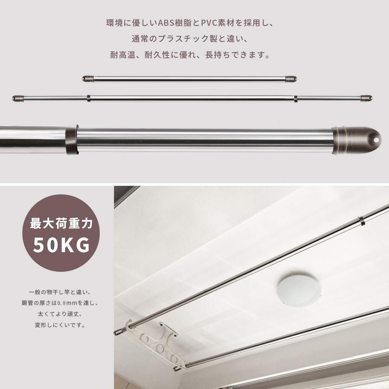 伸縮自在:伸縮できる物干し竿1.8M~4m、スペースに合わせて長さが自在に調節できます。洗濯物の量によって変えられるので、無駄なくスペースを活用できます。ものほし竿 長さは1.8M~4m伸縮できます,3つのセクションのインストールが完了すると、製品は1.8Mになります、 左右のレバーヘッドをヘッドのロゴの方向に回転させます。 任意に1.8M〜4Mまでストレッチ可能,家庭主婦でもラクラクにお使用いただけます。