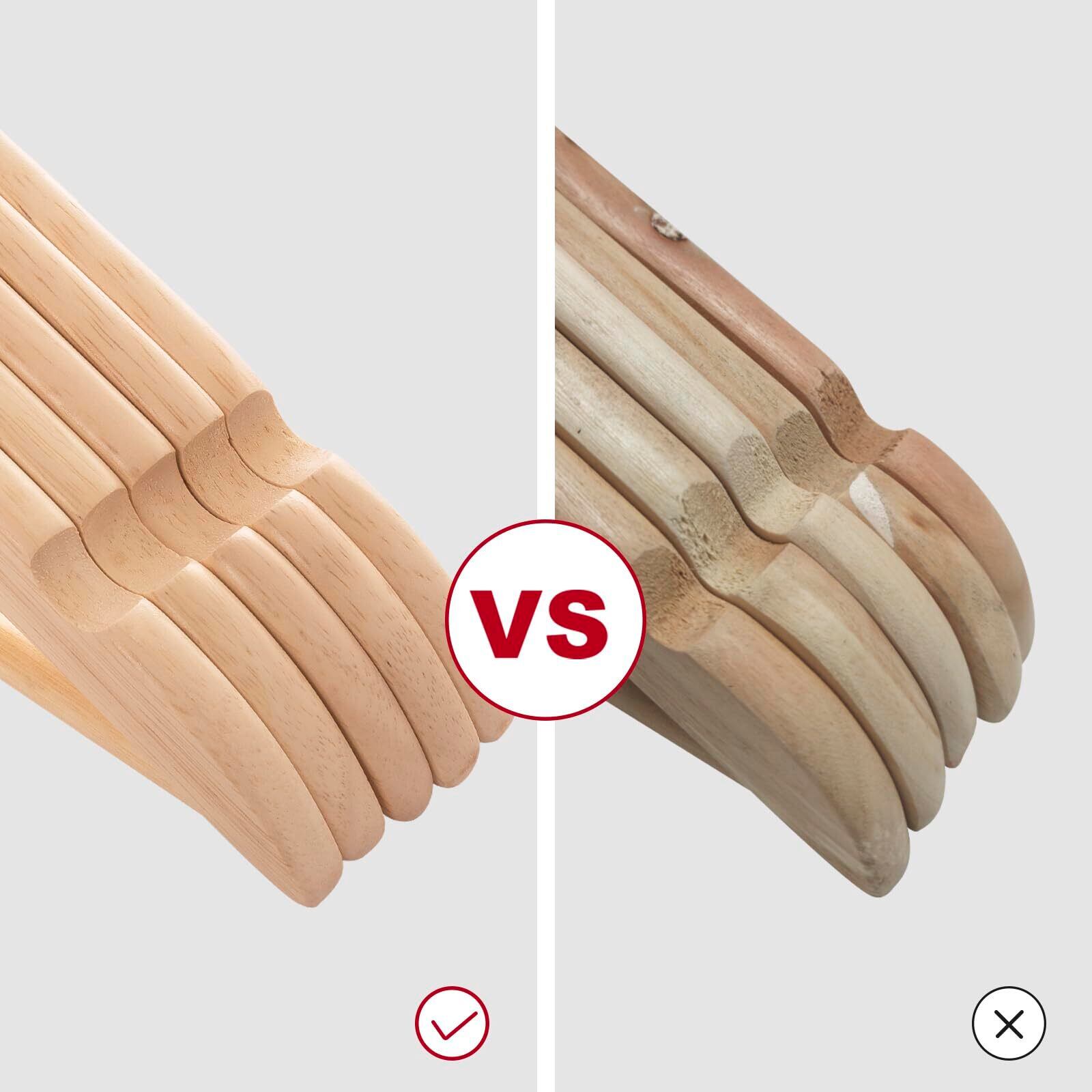 【手作業で丁寧な仕上げ】手作りの洋服ハンガー 木製、滑らかな表面が衣服をひっかかりから保護し、丈夫な構造は、重厚な衣服にもお使いいただけます。ハンガー ジャケット用は肩に滑り止め凹み付き、キャミソールが滑らないようにできます。