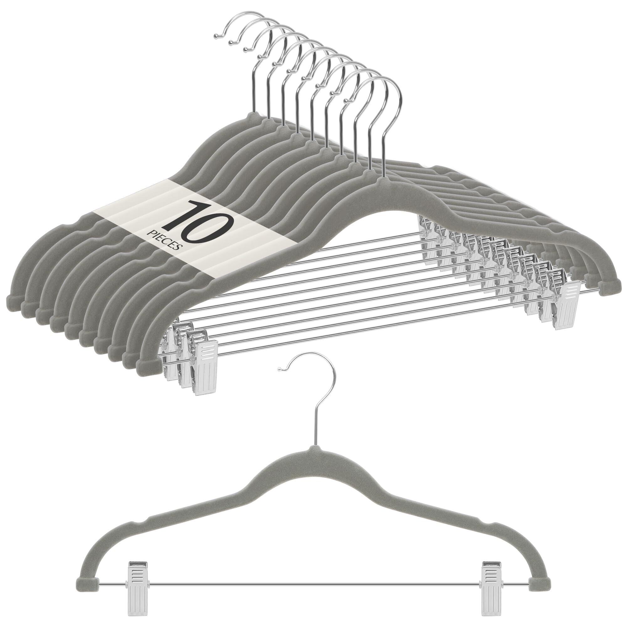 \【◆【限定】チチロバ(Titirba) ハンガー すべらない かたくずれ防止 クリップ スリム 軽量 ベルベット製 10本組 グレー!】/