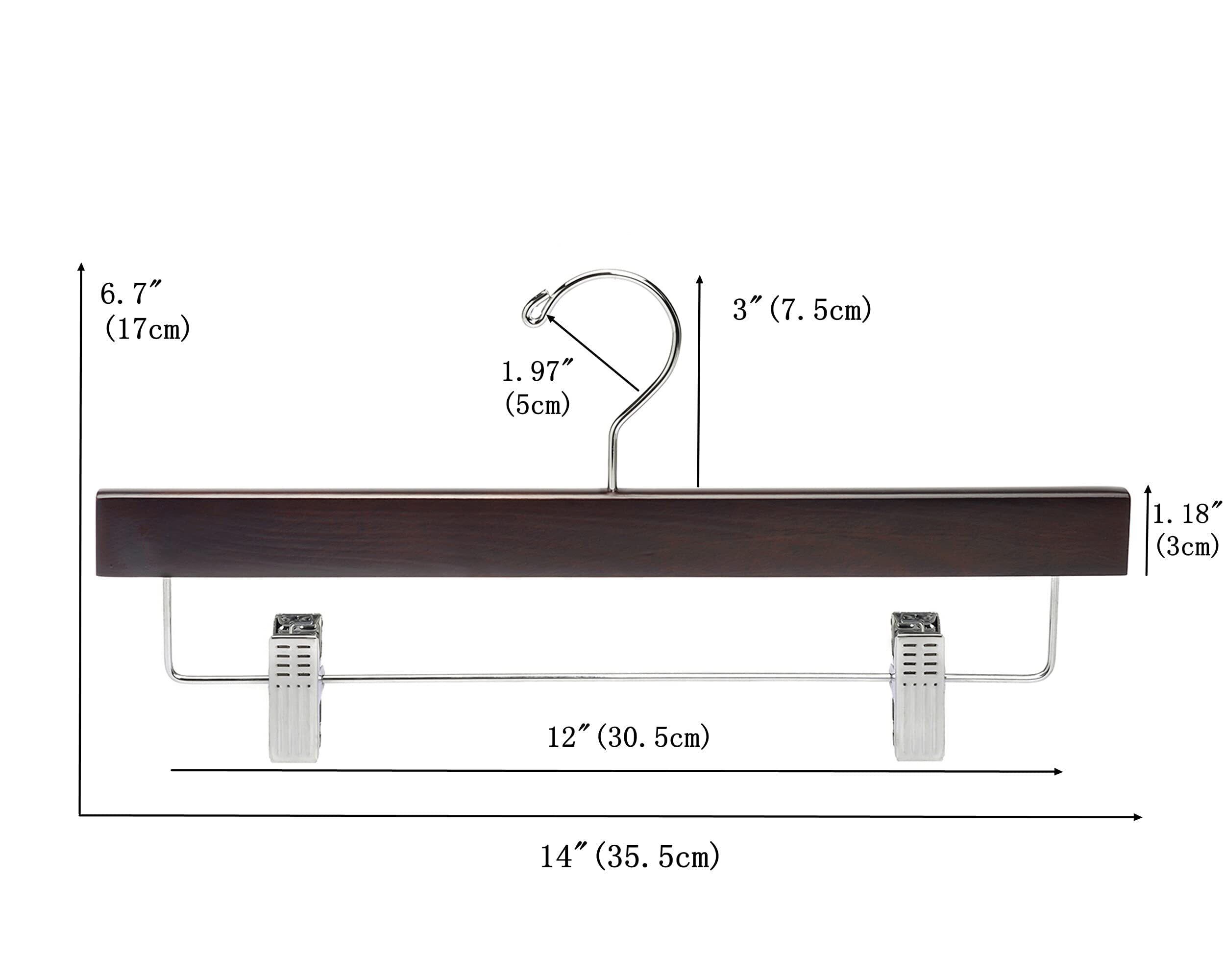 Amber Home 木製ズボンハンガー スカートハンガー 10本組 パンツハンガー ボトムス スラックス 型崩れ防止 滑り止め 調節可能 強力クリップ シワ防止 回転フック 防錆 クローゼット収納整理 省スペース 胡桃色 ダークブラウン