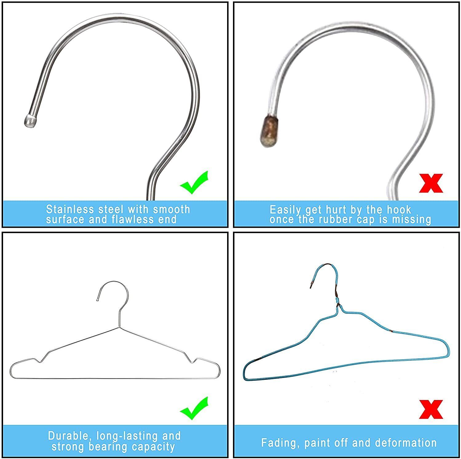 100%ステンレス鋼:耐久性のあるステンレス鋼で作られた、このハンガーは防水です。錆びたり、変形したり、色あせたりしないでください。