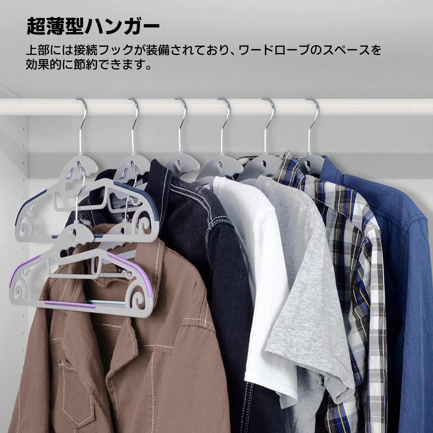 【軽くて薄いので省スペース】 高品質の合金鋼と ABS 素材で作られており、厚さはわずか約 0.4cm で、より薄いデザインにより、ワードローブのスペースを節約し、密集した吊り下げに適しています。