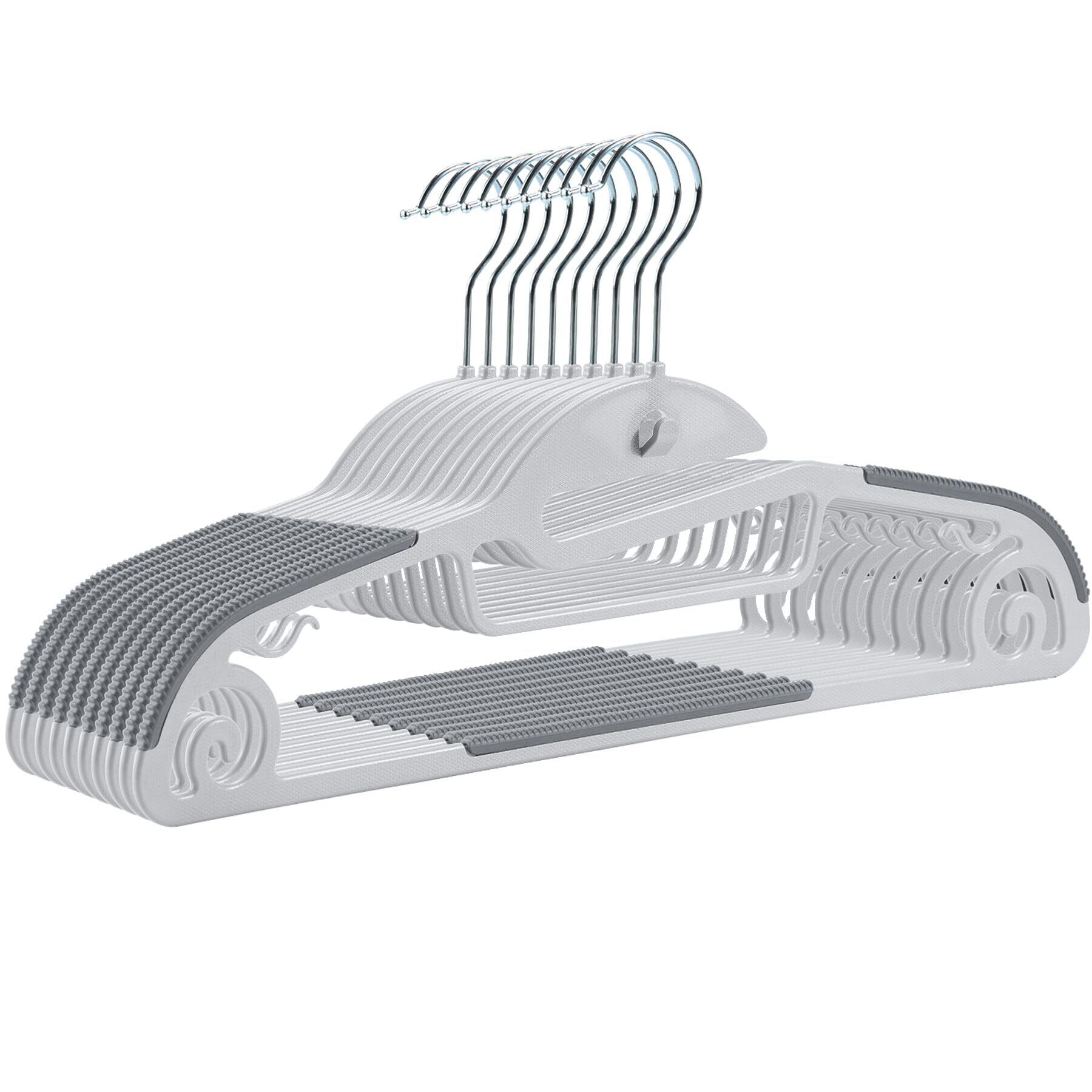 \【◆HOSUR ハンガー 10本組 すべらない 襟が伸びない かたくれ防止 連結フック付き おしゃれ 360度回転フック 多機能 耐荷重 乾湿両用 グレー!】/
