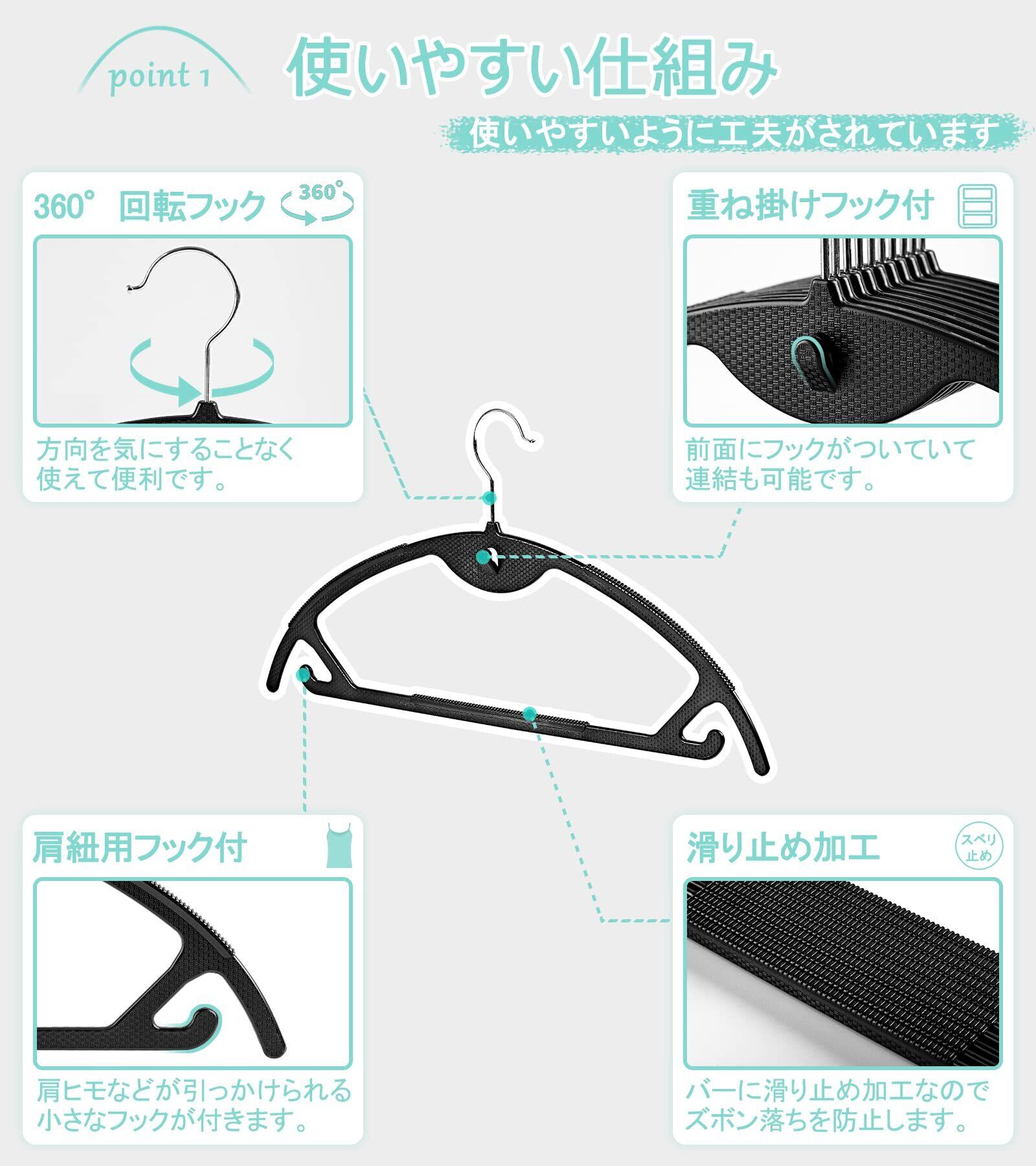 ハンガー かたくずれ防止 10本組 SEWEI 跡がつかないハンガー ハンガー すべらない 洗濯ハンガー はんがー 360度回転フック 連結フック付 ジャケットハンガー 超薄型 乾湿両用 ブラック