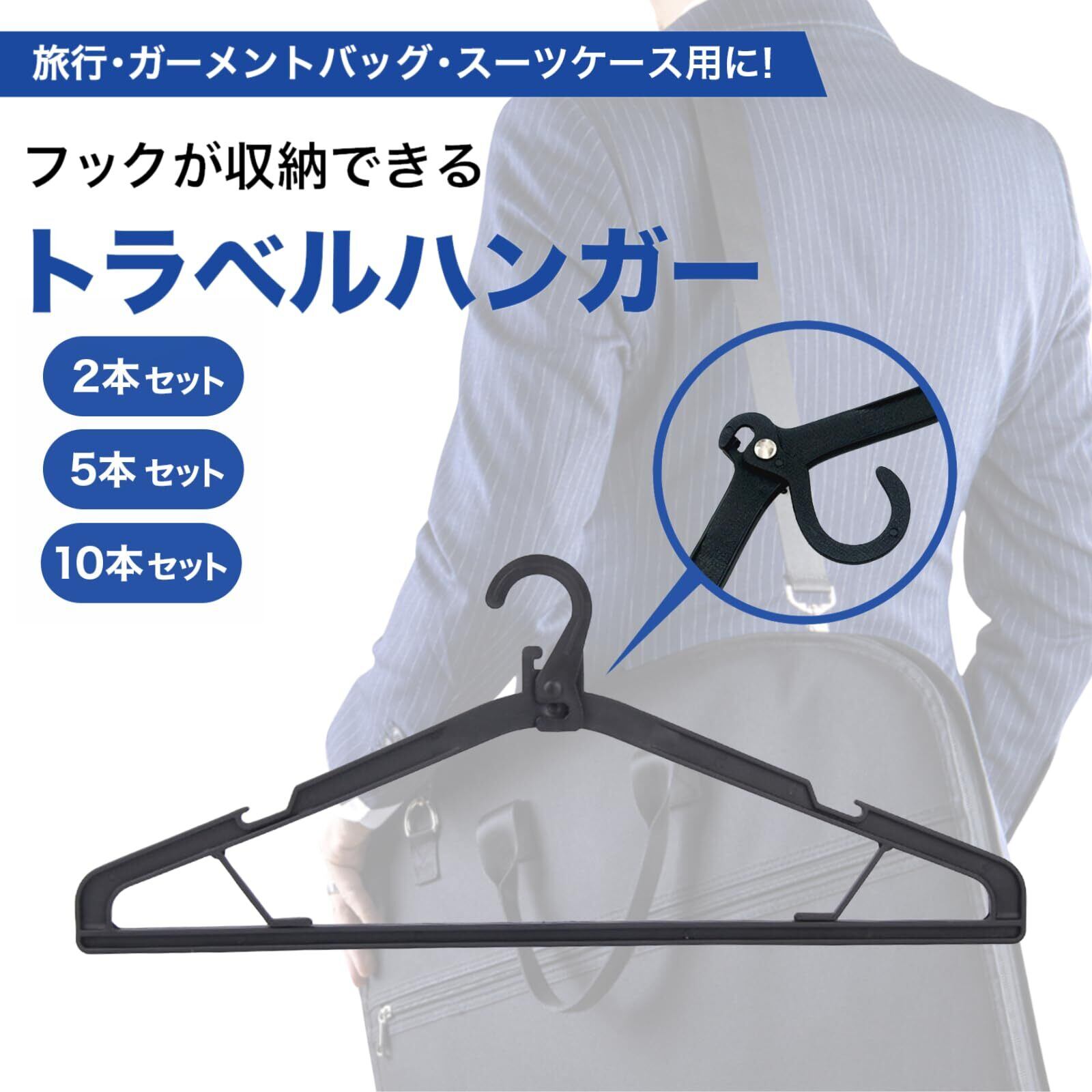 「フックが収納できるハンガー」フックが回転して収納する旅行用、ガーメントバッグ用ハンガー、スーツケース用ハンガーです。