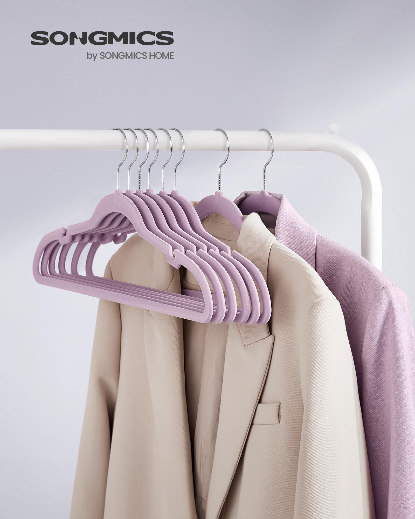 SONGMICS ハンガー かたくずれ防止 すべらない 滑り止め 30本セット 肩ノッチ付き 衣類収納用 スーツハンガー ジャケット・Tシャツ・パンツ・ズボン掛け用 360°回転 スリム 省スペース クローゼット用 ベルベット製 パープル CRF029GP03