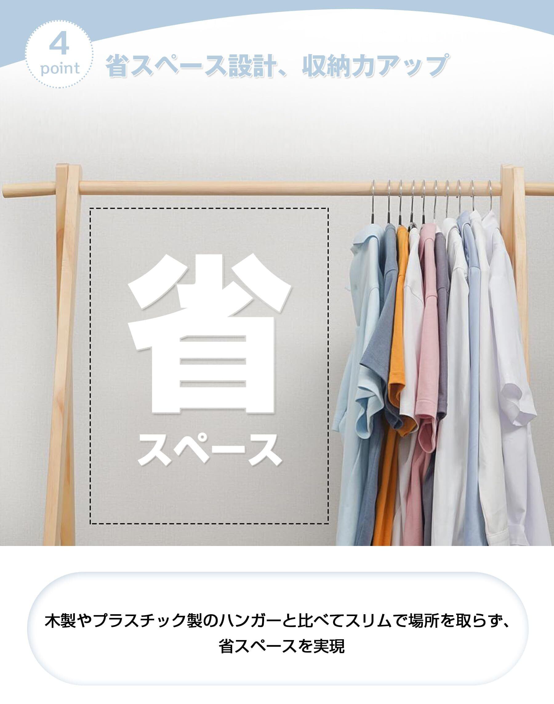 邪魔にならないスリムなデザインで、クローゼットや洗濯スペースを有効活用。10本セットで効率的に収納可能です。整然とした収納を実現し、衣類を見やすく保つことで、毎日のスタイルがさらに楽しくなります。