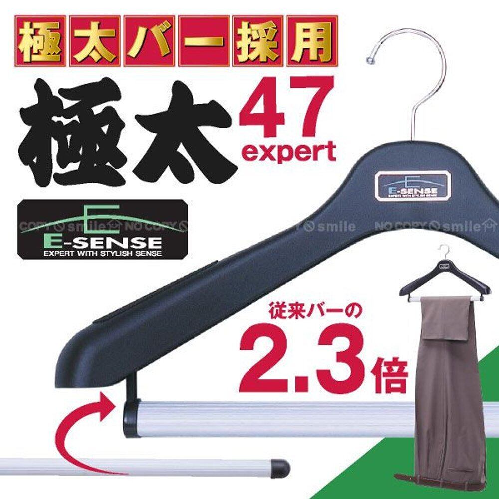 サワフジ 洋服ハンガー E-SENSE エキスパート極太47 ブラック 幅470mm 日本製 ズボン パンツ ジーンズ 極太バー 折りジワ型くずれ防止 すべりにくい 肩すべり止めシール付 メンズ レディース プラスチック 収納 クローゼット 衣類 タオル EXGB-47
