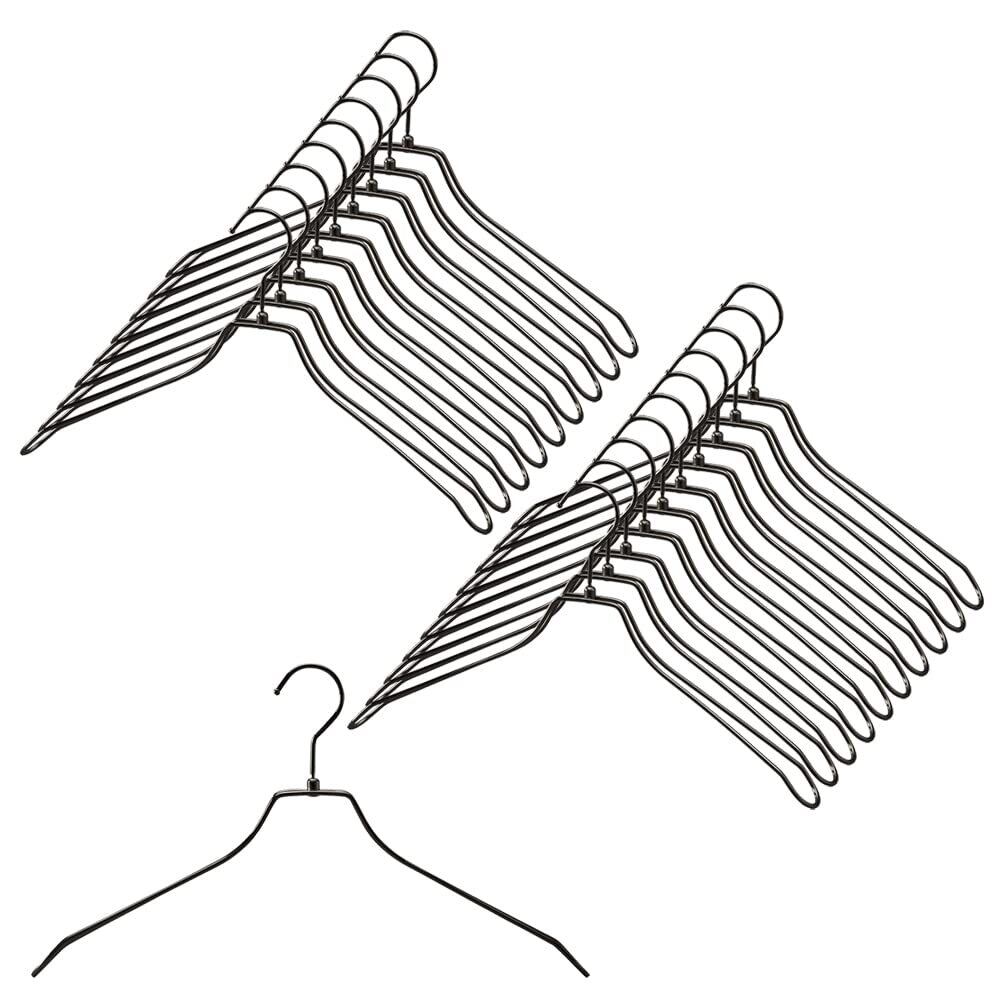 TAMATOSHI ダブルスチールハンガー 幅42cm 20本組 ブラックニッケルメッキ 5年 店舗什器メーカー開発 スリム 高級 自宅 店舗 洗濯 薄い あとがつかない 頑丈 収納 錆びにくい 曲がらない