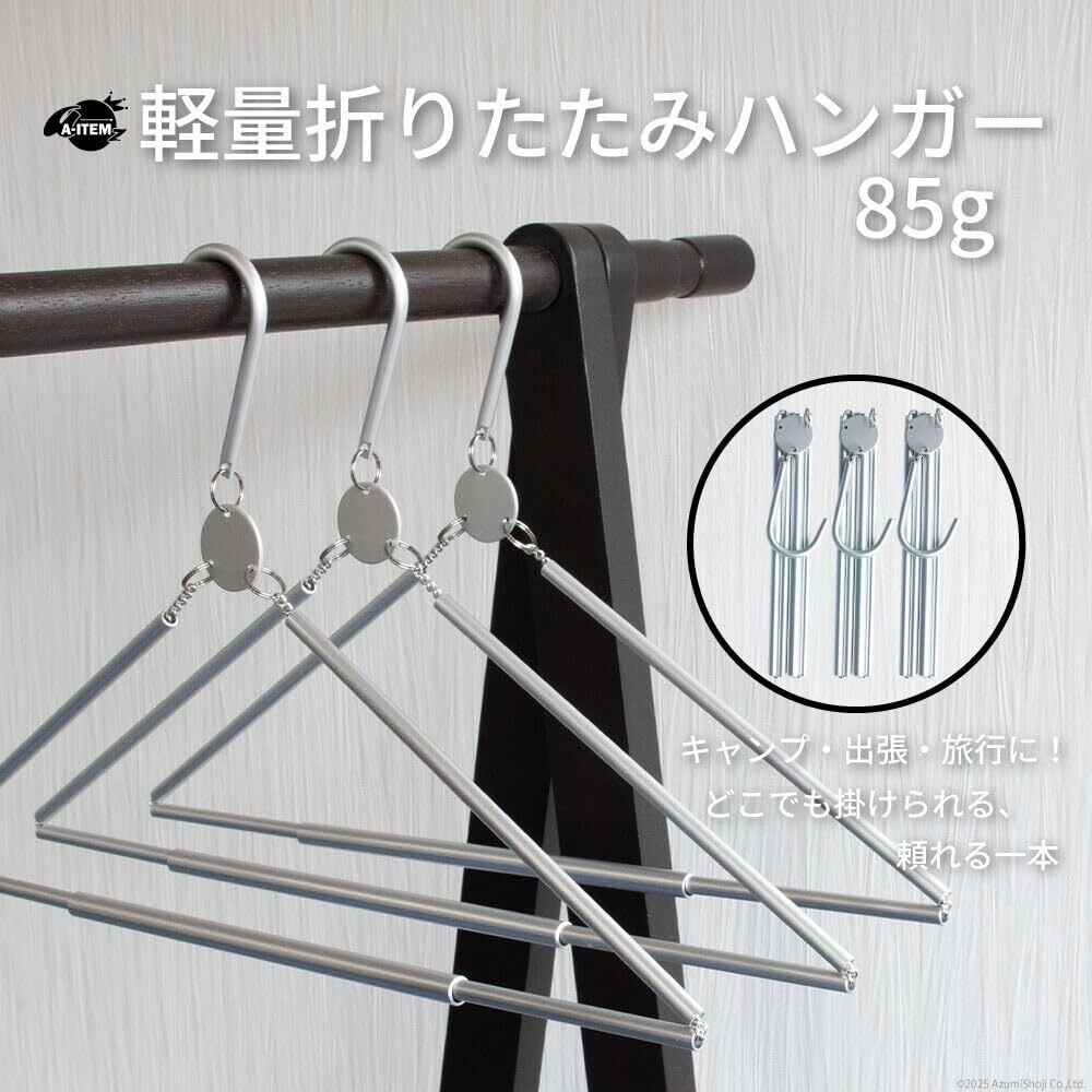 A-ITEM 軽量折りたたみハンガーは、わずか85gの超軽量設計で、旅先やアウトドアでも大活躍。