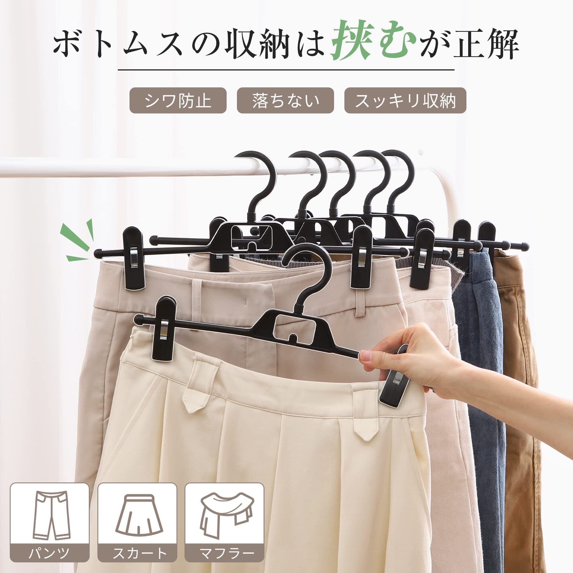 【ボトムス幅に合わせて調整可能】クリップは左右にスライドするので、子供用の服から大人用の服まで使用可能。