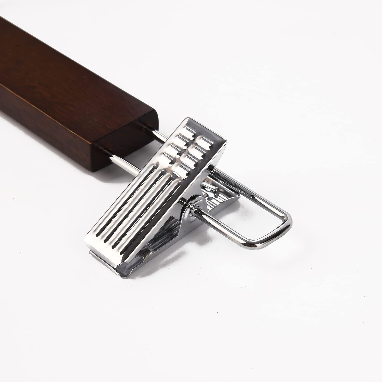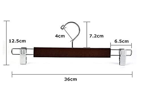 Amber Home 木製ズボンハンガー スカートハンガー 10本組 パンツハンガー ボトムス スラックス 型崩れ防止 滑り止め 調節可能 強力クリップ シワ防止 回転フック 防錆 クローゼット収納整理 省スペース 胡桃色 ダークブラウン