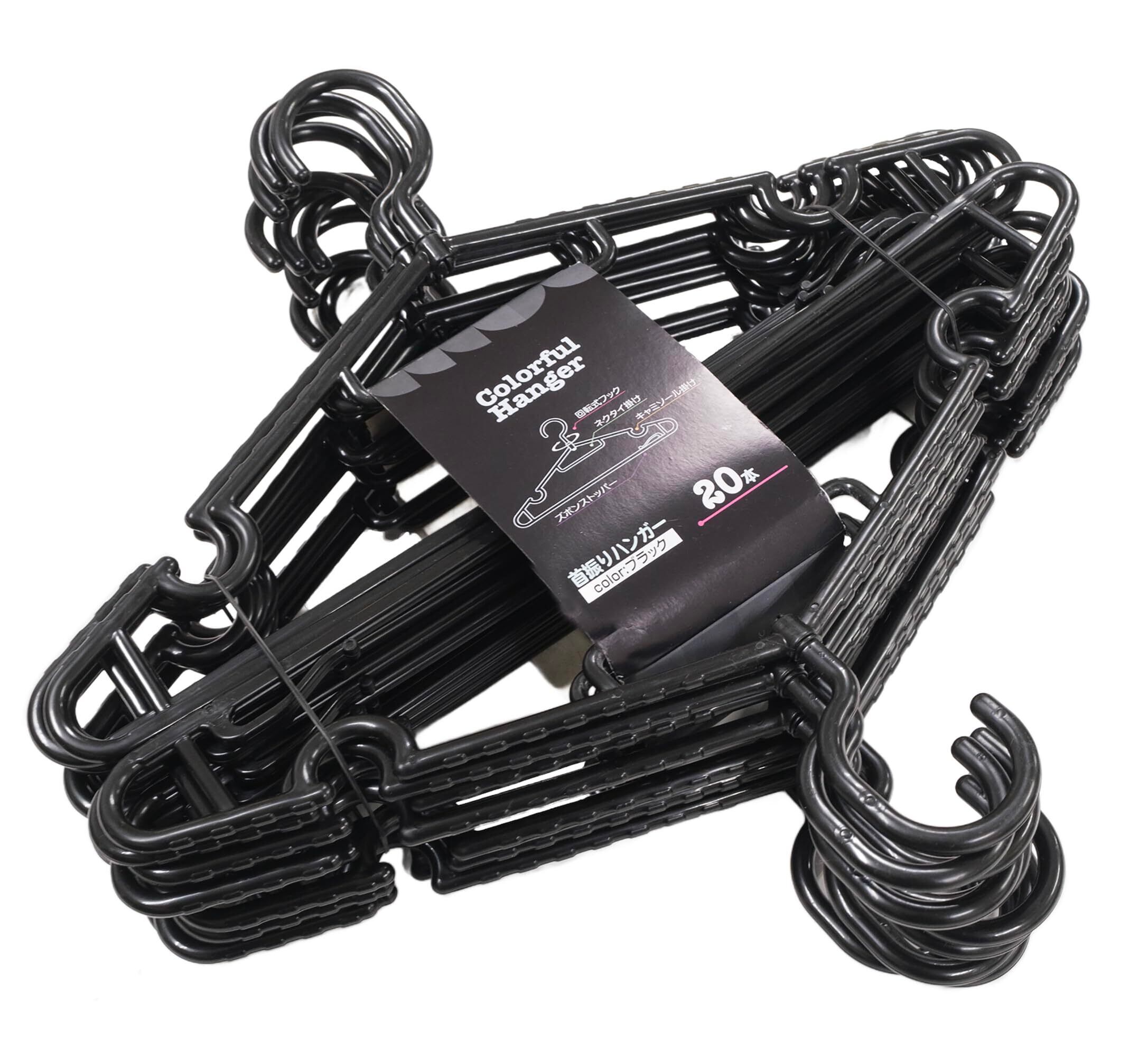 【 まとめ買い 】 回転フック ハンガー 黒 20本 セット ズボン スラックス ネクタイ キャミソール 対応 滑り止め付き 衣類用 省スペース収納 水勘製簾所