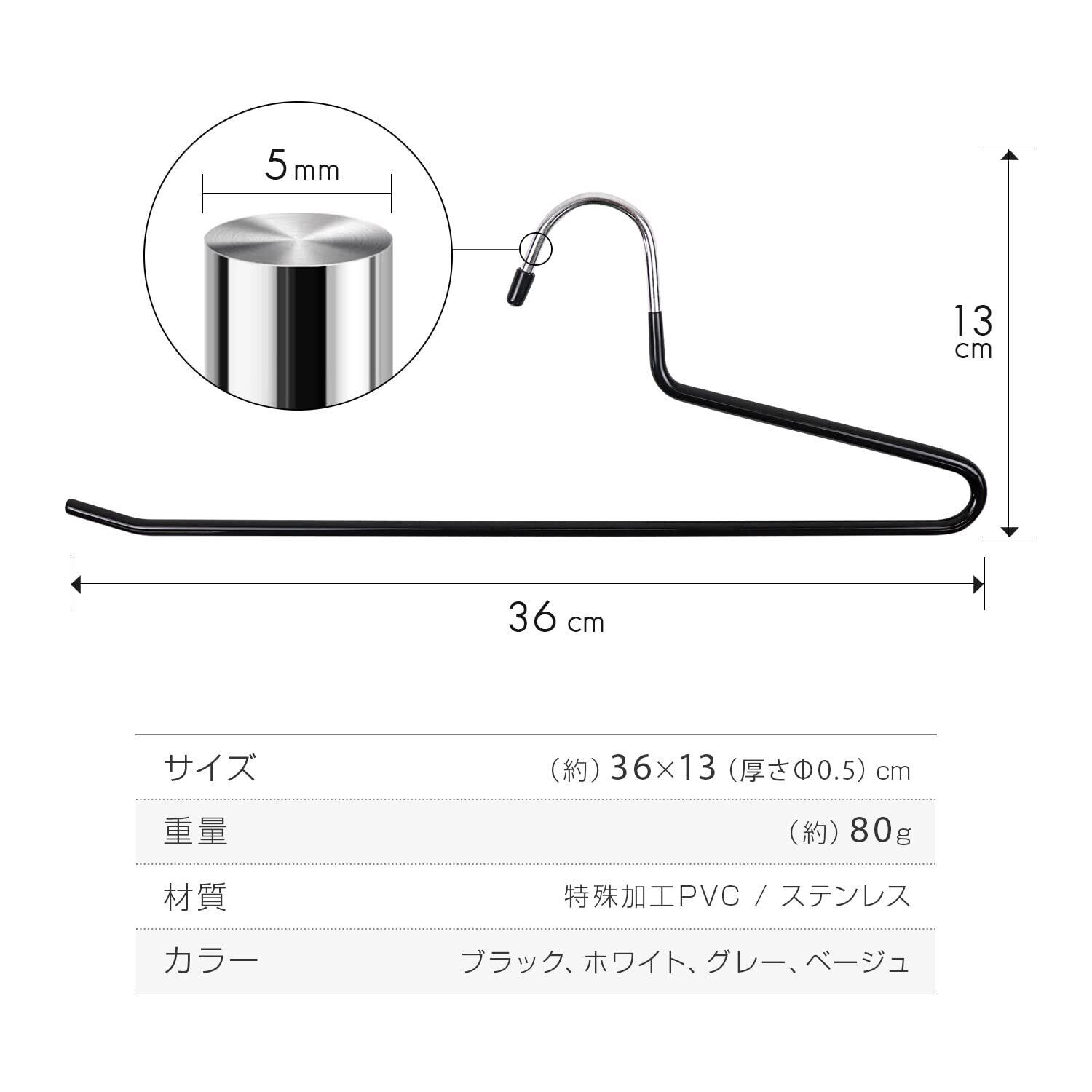 【使いやすい!】衣類を掛けやすく、取り出しやすいシンプルでオシャレなデザイン!クローゼットの中でもとても使いやすくしっかり収納できます。◎ラバーキャップ付きで、服や指に引っかかることがありません。◎上向きのリアデザインで衣類のずれ落ちを防ぎます。◎光沢のある高級感ある素材で安全なラウンドフォルムデザイン。