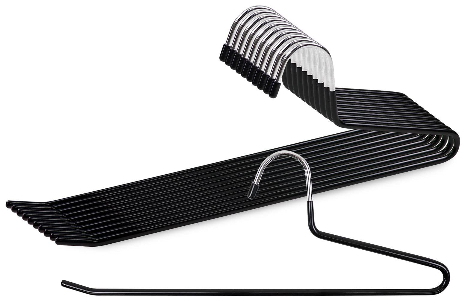 ROROPOCO(ロロポコ)すべらない ズボンハンガー スラックス用 スカート用 デニム適用 ロングスカート ボトムハンガー マフラー ネクタイパンツ 滑らない 跡がつかない スリム 頑丈 省スペース 洗濯物 物干し (10, ブラック)