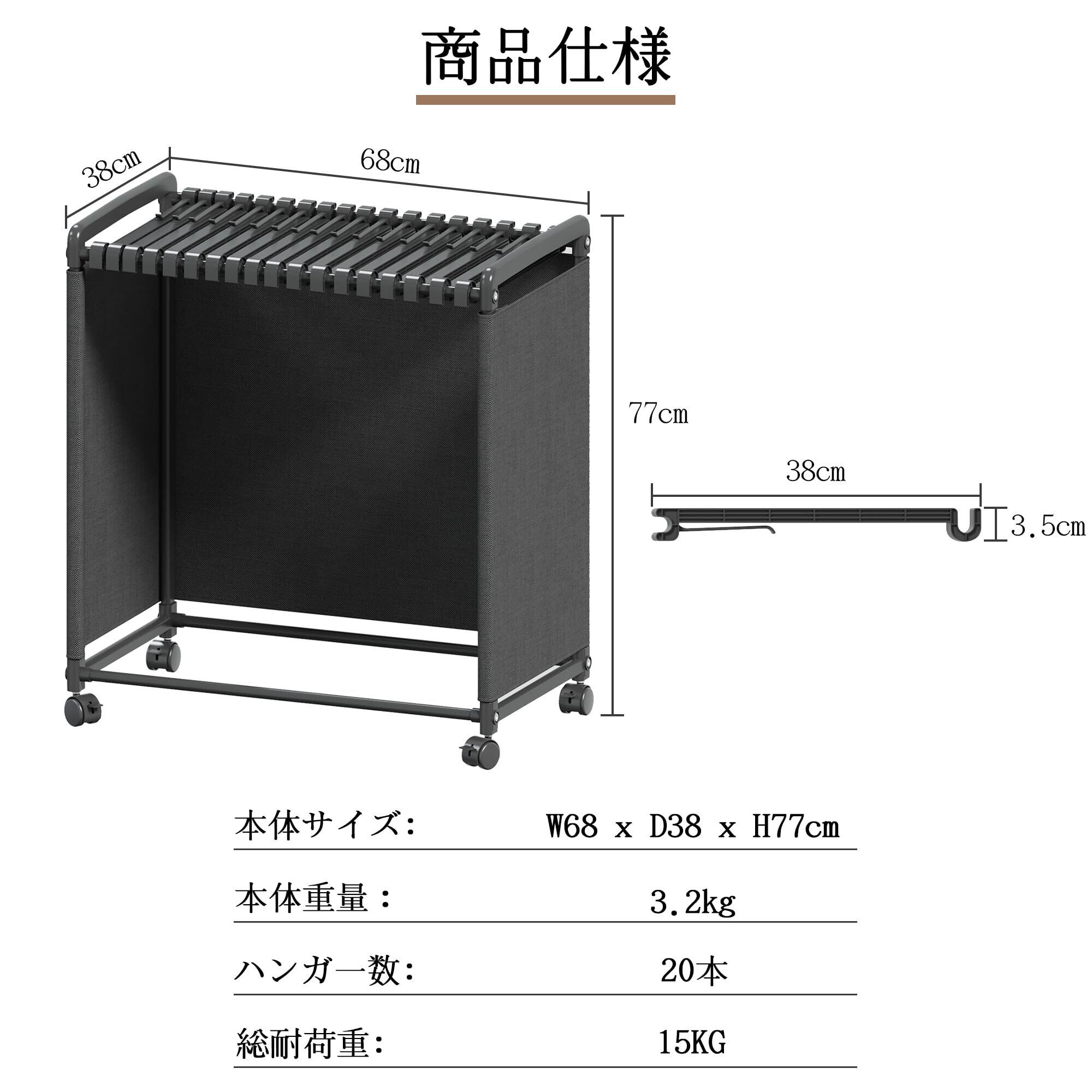 スラックスハンガー 【掛けて、ふわっと隠す。】隠しカバ一付き ズボンラック 大容量 20本掛け キャスター付き 幅68×高さ77×奥行38㎝ 耐荷重15kg 床置きズボン棚 クローゼット収納 取り外し可能 軽量 頑丈 省スペース 簡単組み立て(ブラック)