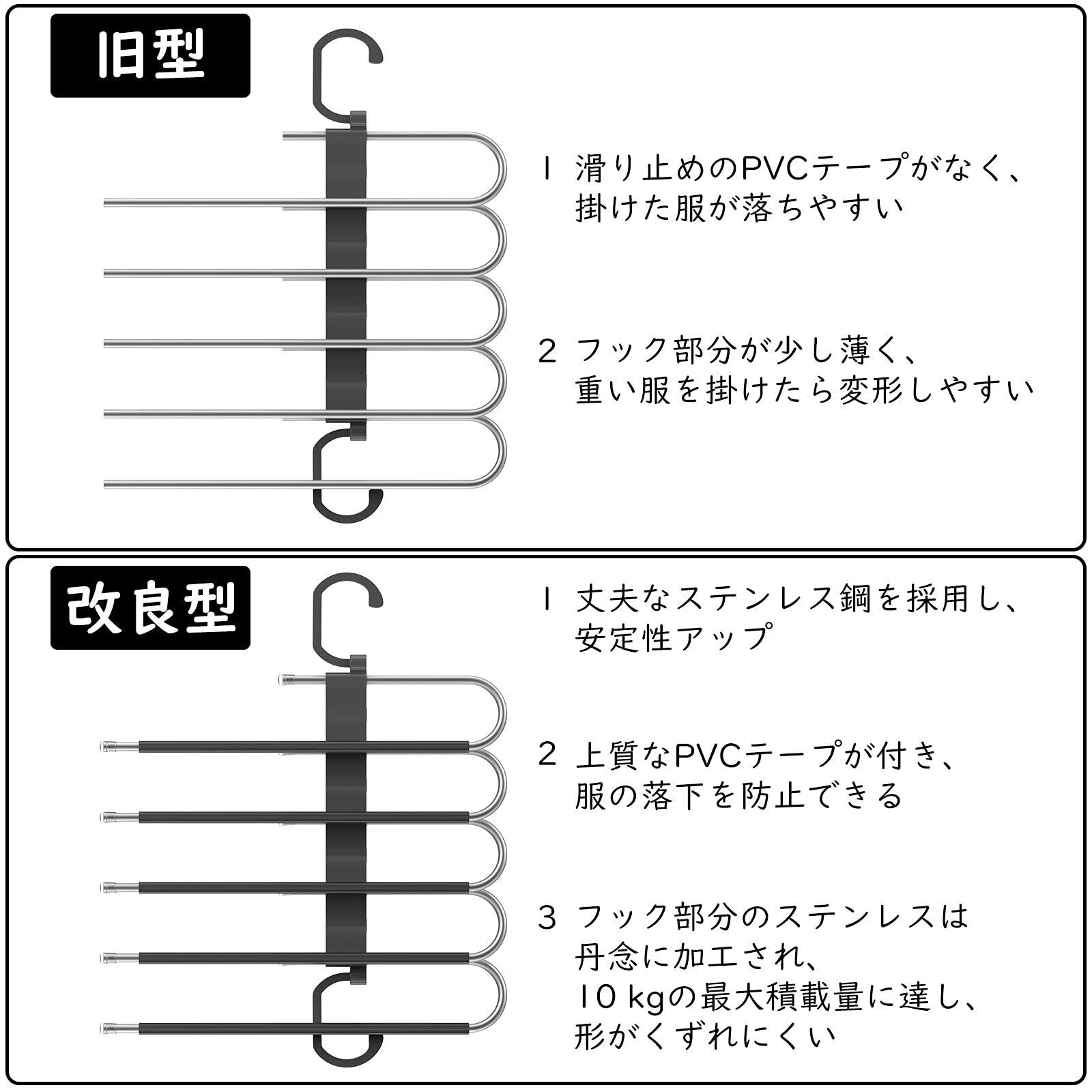 「上質な素材」 ハンガーは5本耐久性が優れた高品質なステンレス素材と丈夫なABSで組み合わせて、軽量で、錆らなくて、使用寿命が長いで、表面にも見た目はおしやれな金属光沢があります。