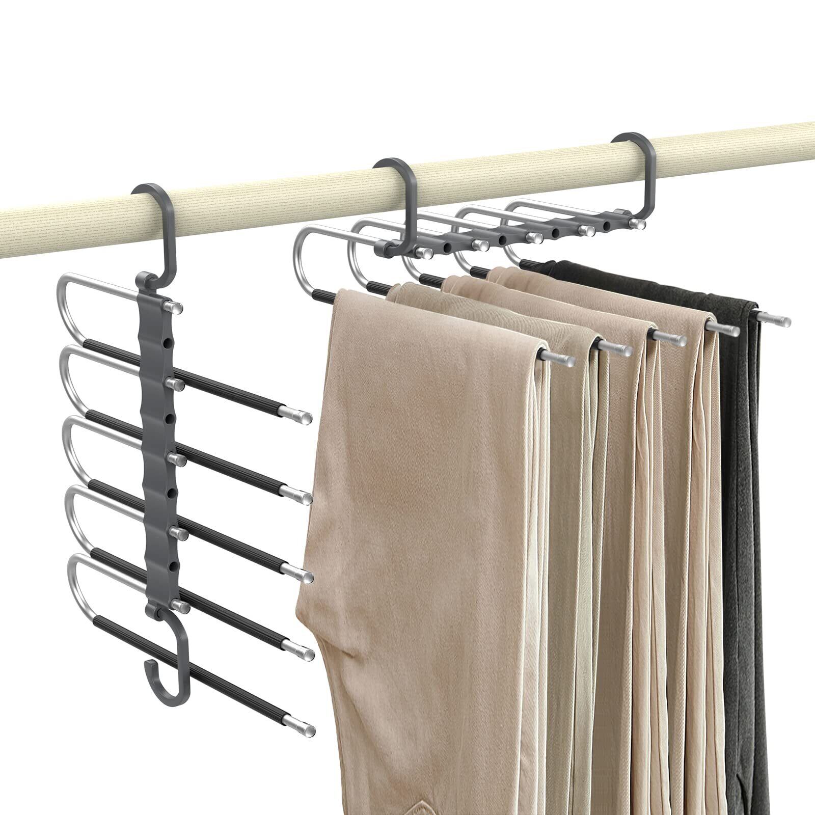 Housolution ズボンハンガー 2本セット パンツハンガー スラックス すべらない 5段 折りたたみ 物干しスタンド 省スペース 縦横両用 滑らない 皺防止 ステンレス 軽量 多機能 360°回転 マルチハンガー Black