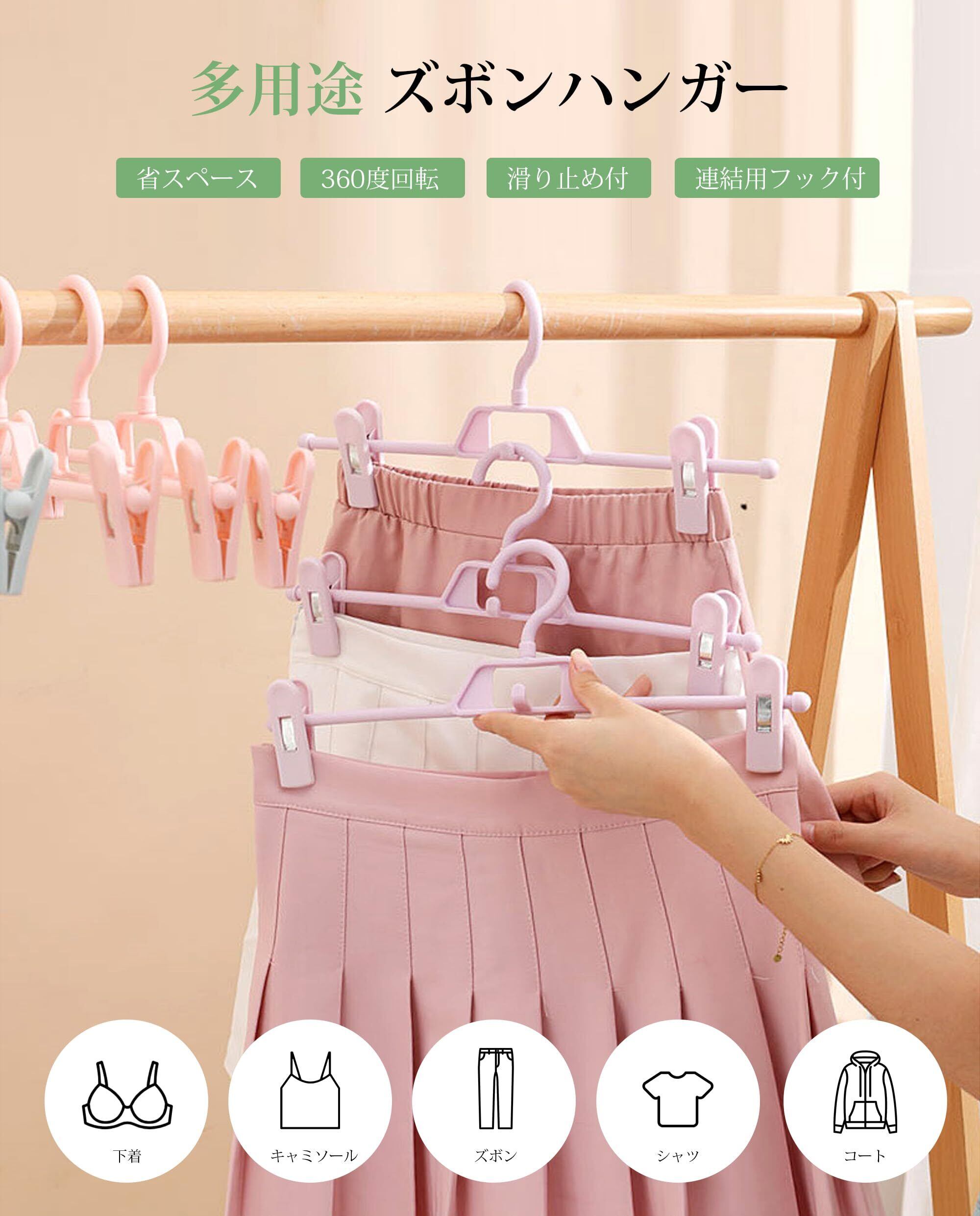 【省スペース】多段・連結フックがあり、クローゼットが狭い家庭でも省スペースでたくさんのアイテムを収納できます。ゴチャつきがちなクローゼットもすっきりします。収納スペースを最大限に活用することができます。様々なスカート、ズボンに適するだけではなく、マフラーやスカーフ、水着やインナー小物類にも適しています。