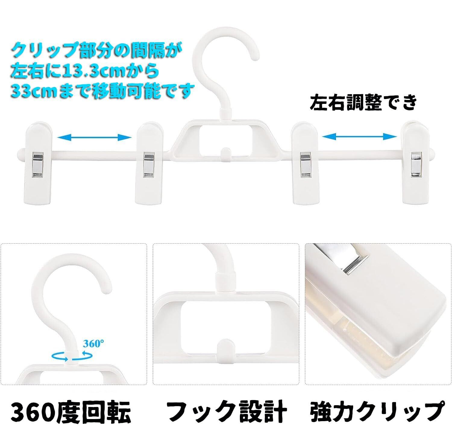 プラスチック スカート ハンガー クリップ付き ボトムハンガー ズボンハンガー スラックスハンガー パンツハンガー プラスチック 洋服 360度回転フック 連結フック付 サイズ調整可 8本セット ホワイト
