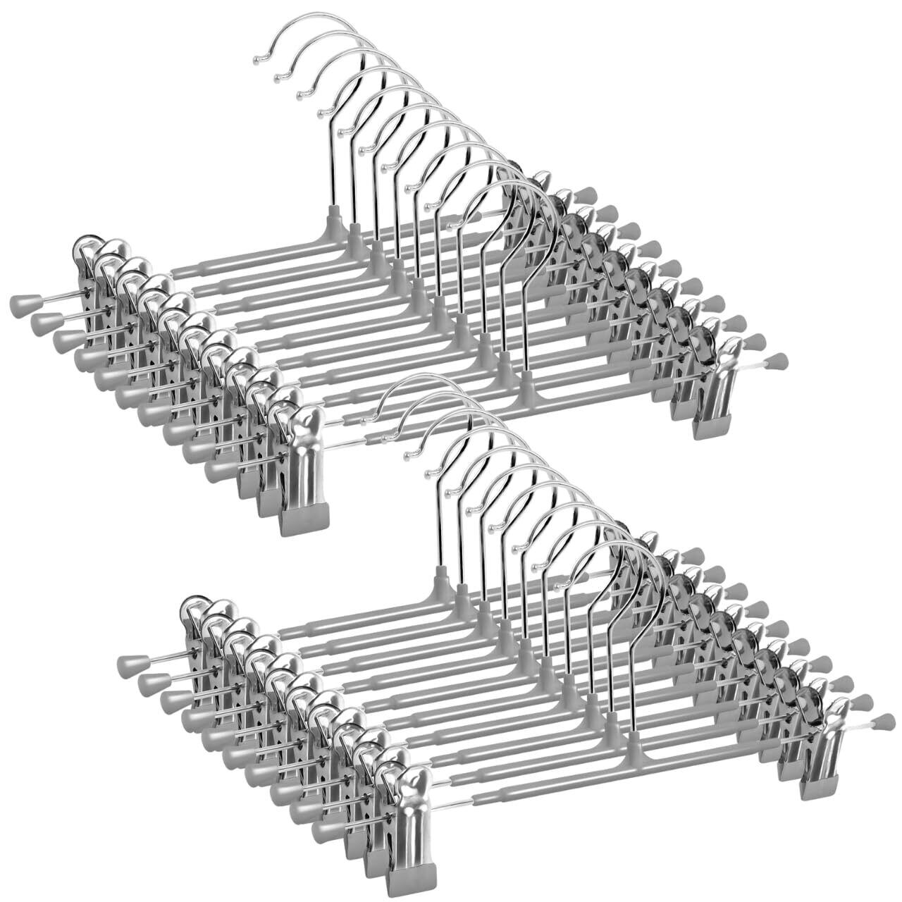 \【◆スカートハンガー 【洋服のプロも愛用!スカートを美しく保つハンガー】 ズボンハンガー ハンガー スカート クリップ付き 省スペース 落ちない 360度回転フック サイズ調節可 20本セット】/