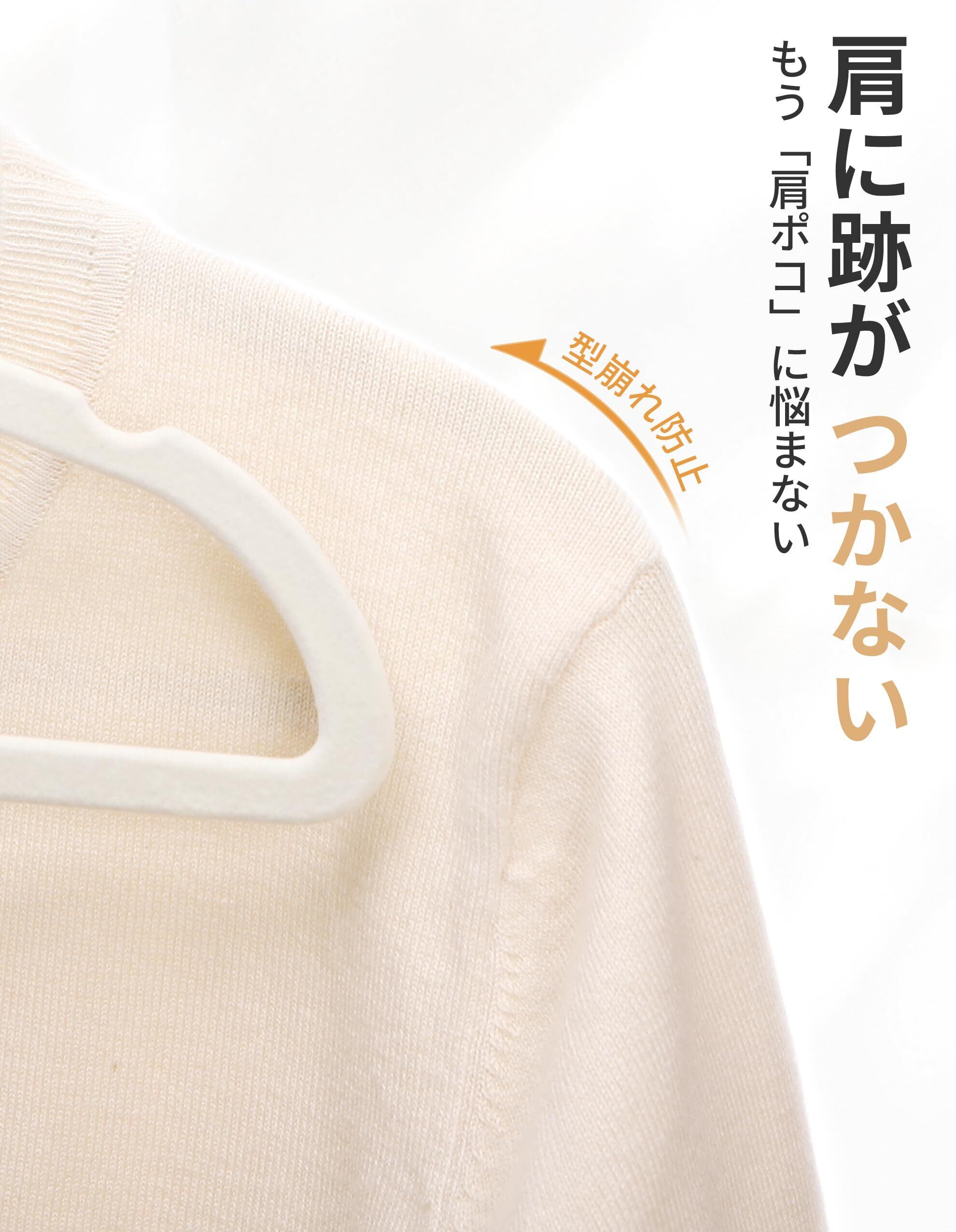 【 限定】アイクラシ(Ikurashi) ハンガー すべらない 20本組 かたくずれ防止 跡がつかない スリム ベルベット製 アイボリー