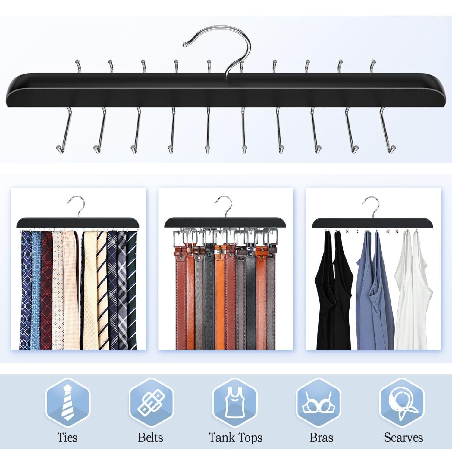 \【◆ネクタイハンガー 40本収納 ネクタイ掛け ベルトハンガー 収納専門家推薦 小物 収納 スカーフハンガー すべり落ちない 360°回転フック 吊り下げ スペース節約 ハンガー 2個セット (G-2本ネクタイハンガーblack)】/