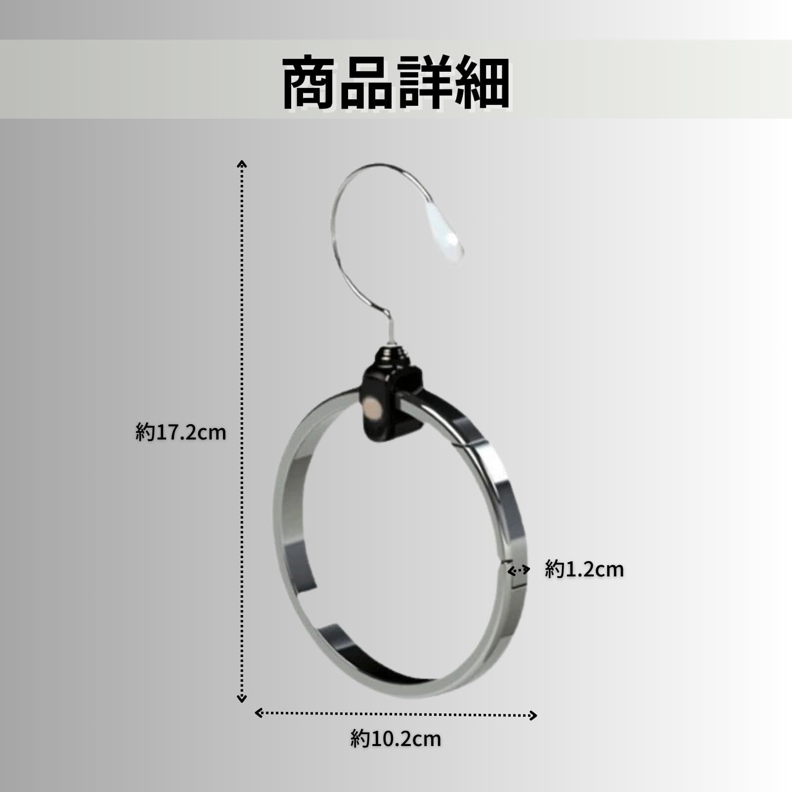 この丸型ハンガーは、限られたスペースでも無駄なく利用できる設計。ネクタイやスカーフが絡まることもなく、すっきりとした整理整頓を実現します。クローゼットの整理にぴったりです!