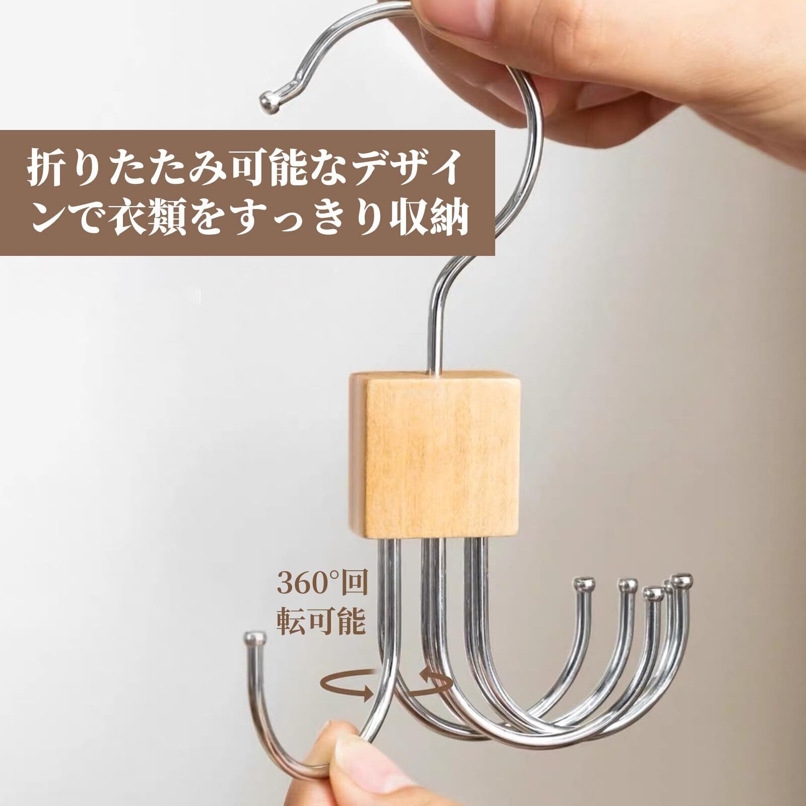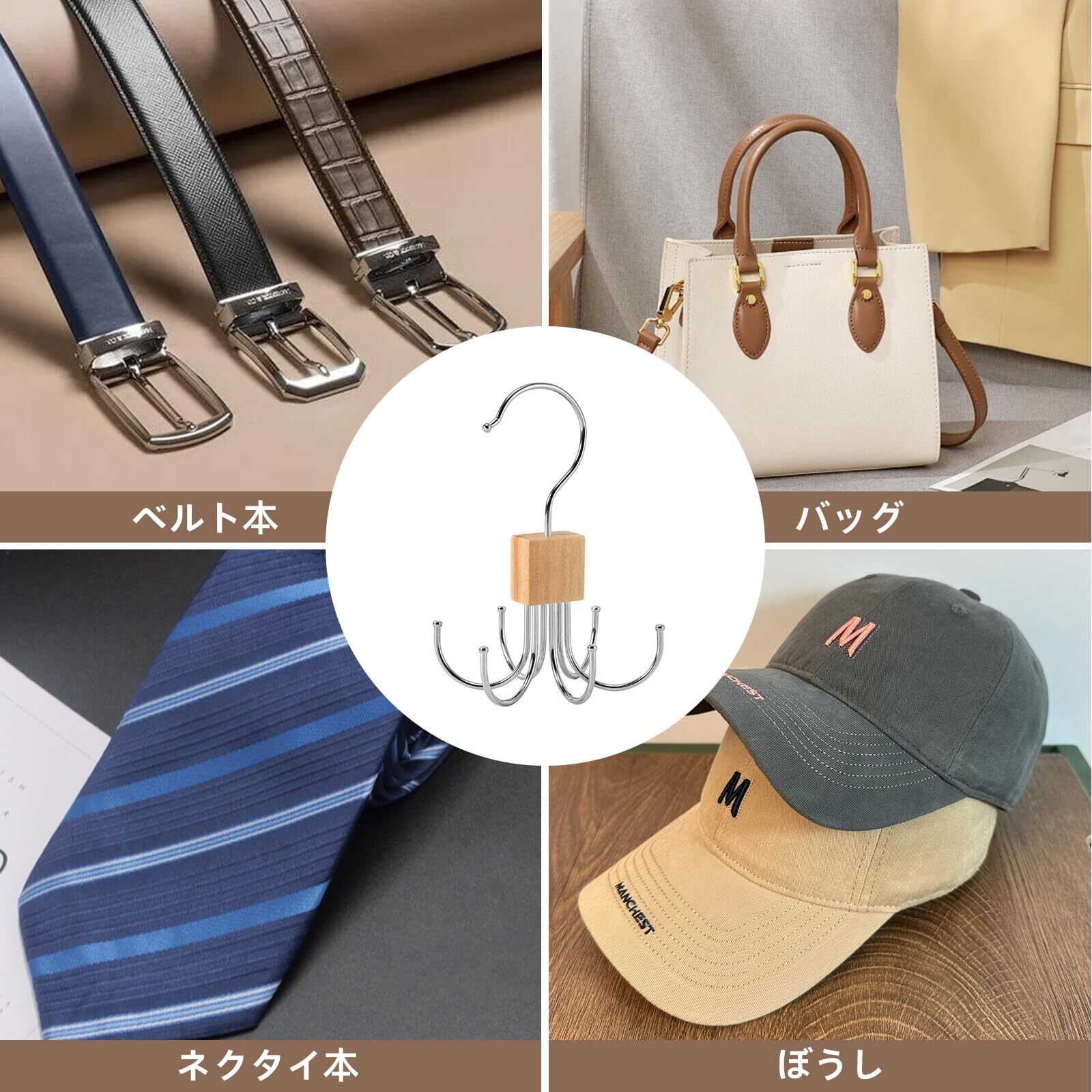 「4個入り ネクタイハンガー」は、ネクタイやベルトはもちろん、帽子やバッグなど多用途に対応した便利な収納アイテムです。6つの爪が360度回転するフックを採用し、素早く取り出すことができ、毎日のコーディネートを快適にサポートします。