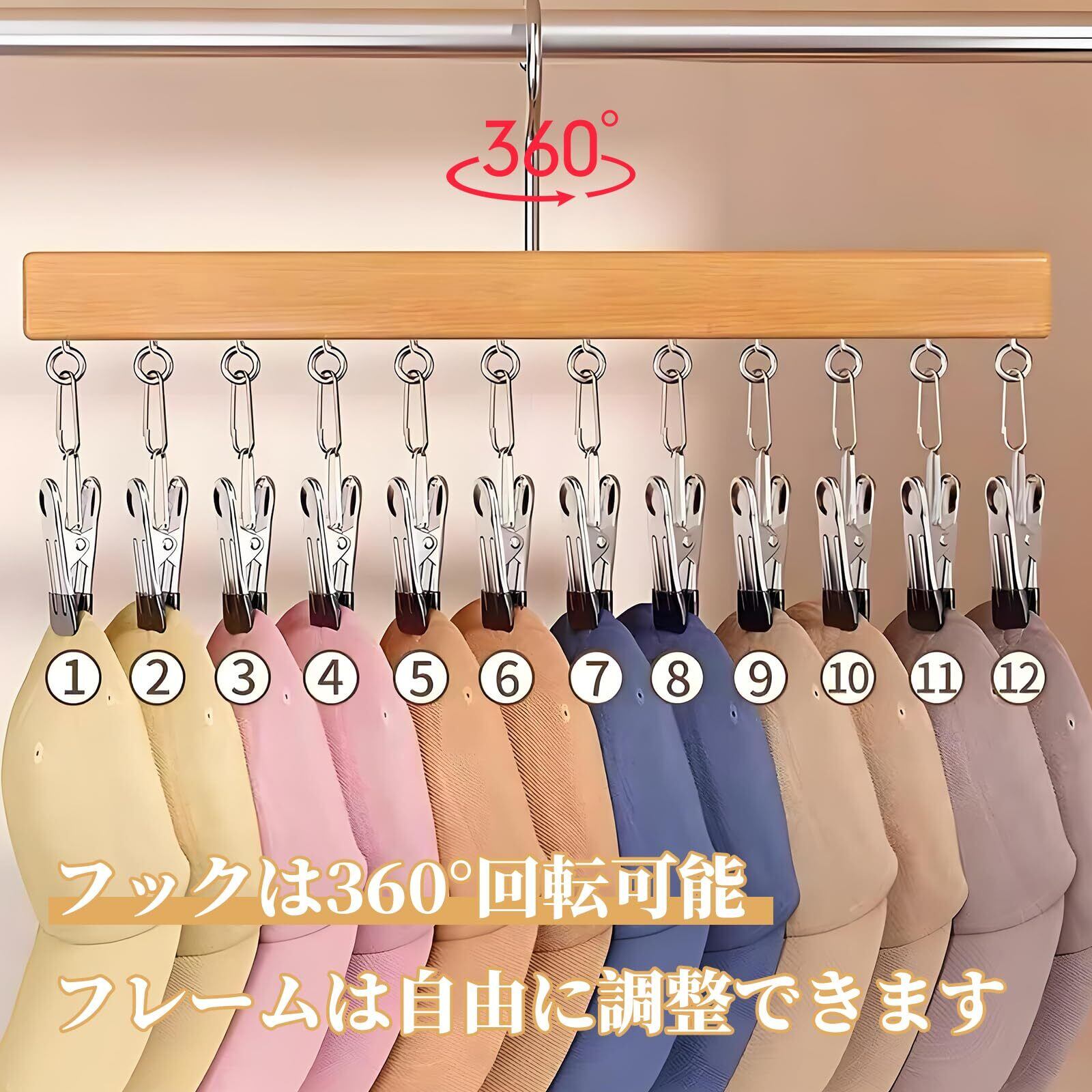 【多用途な家庭で大活躍】この帽子ハンガーは帽子だけでなく、マフラー、ネクタイ、ベルト、水着、下着などさまざまなアイテムの収納に。旅行中の洗濯物干しやホテルでの一時収納にも便利です。2個セットなので、洗濯物の分類や種類別収納に最適です。