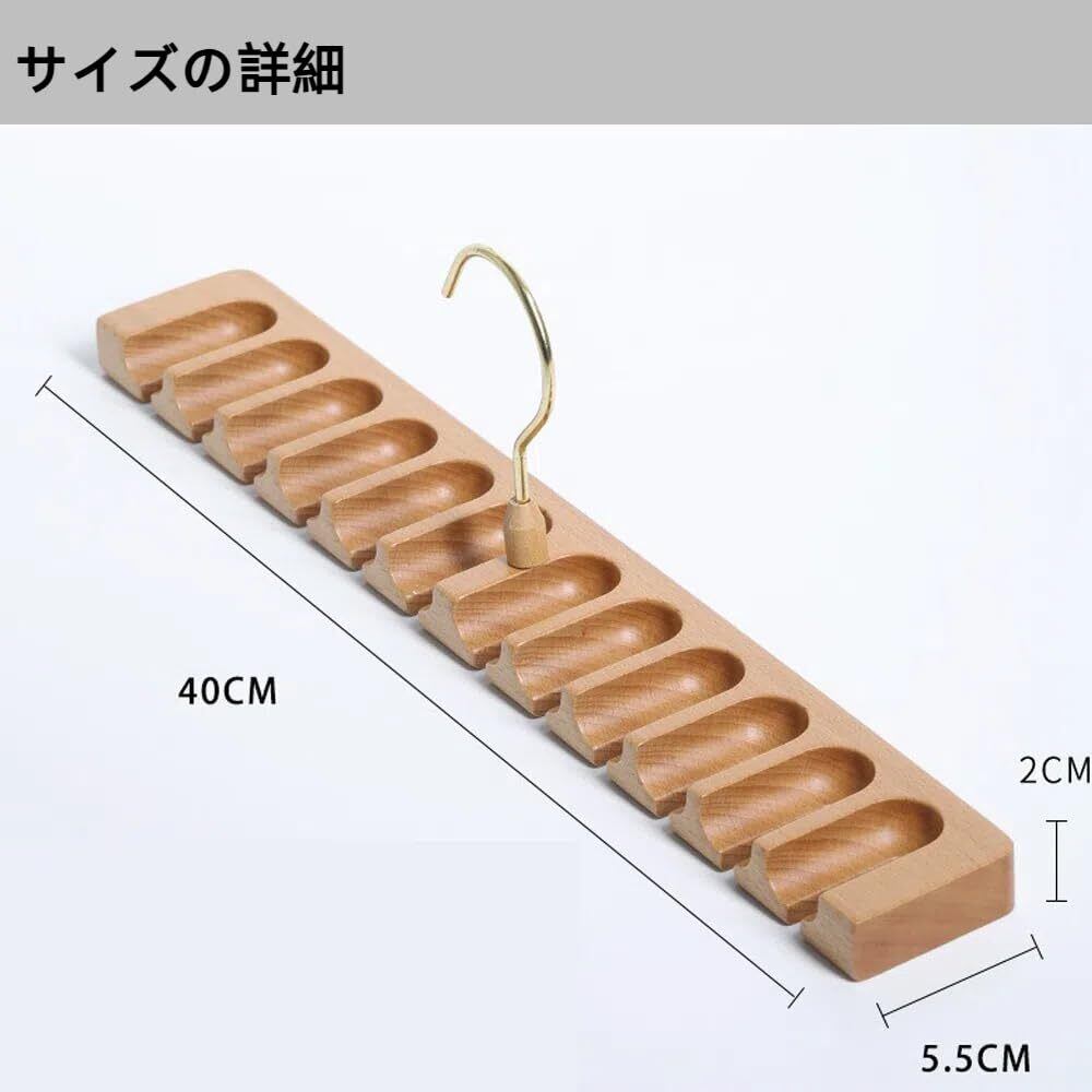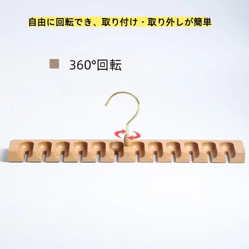 【商品の仕様】サイズ:39×5.5×2cm このベルトハンガーは、上質な天然ブナ材で制作され、丁寧に加工されているため、高級感と優れた耐久性を兼ね備えています。1.7cmのスロット設計により、簡単に取り付け・取り外しが可能。さらに、360度回転するサビにくい金属製フックを採用しているため、アクセサリーを自由に掛けられ、使い勝手が抜群です。