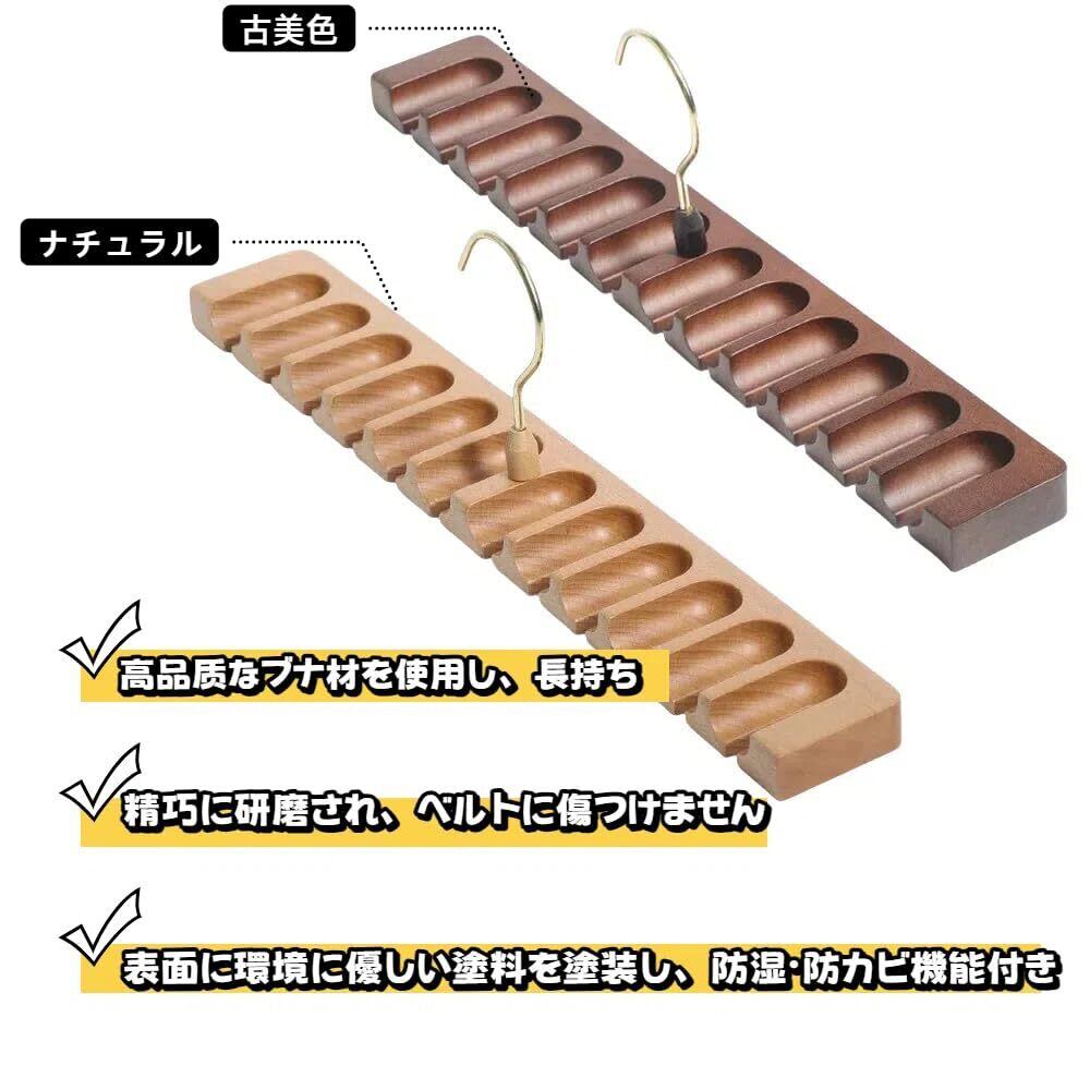 ベルトハンガー ベルト収納ハンガー ネクタイ掛け 12本掛け ラック ネクタイ収納 360度回転 コンパクト 省スベース 木製 整理 クロゼット 整理整頓 クリア 古美色(クリア)