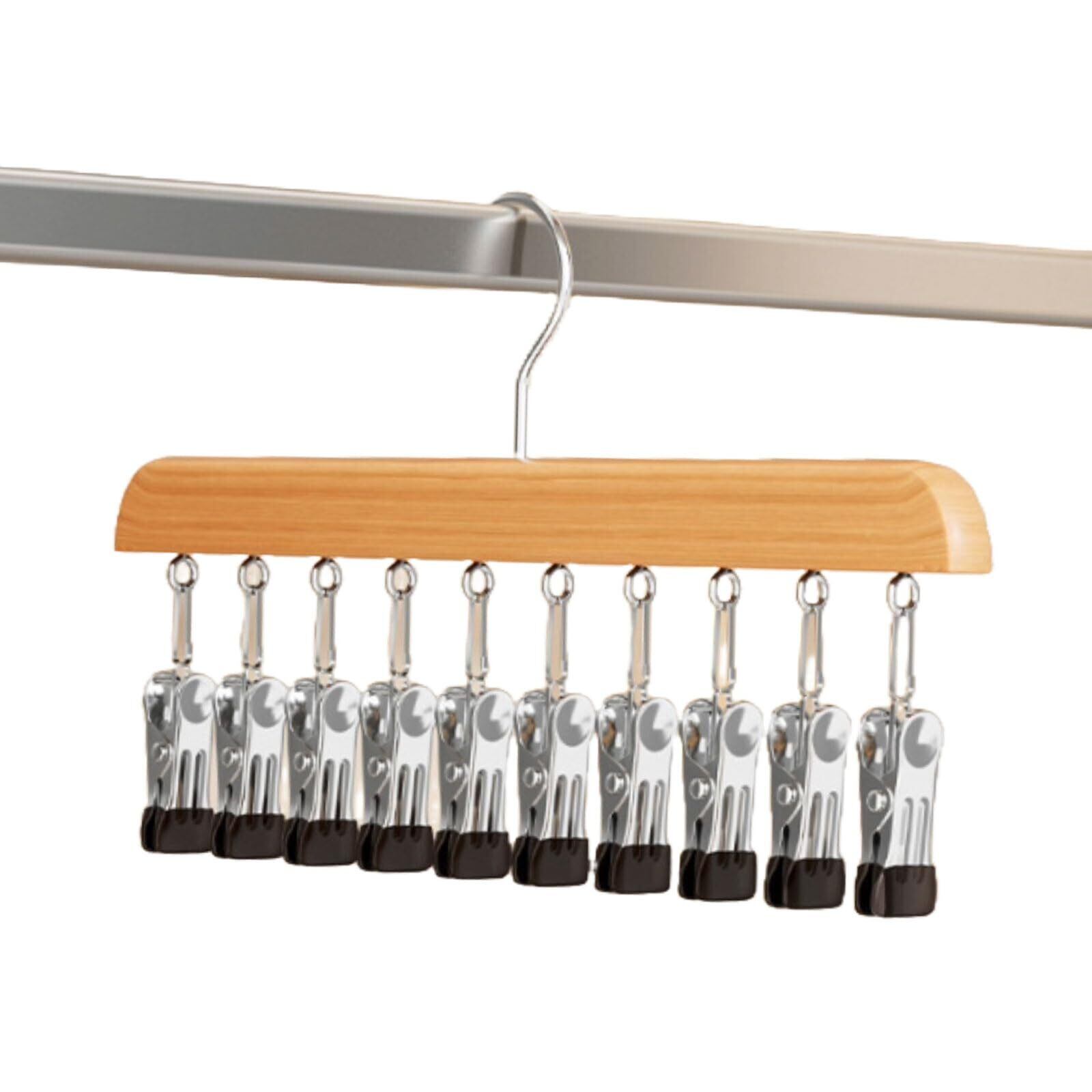 【寸法】幅28cm、高さ18cm【機能】クリップ式ハンガー、滑り止め付きピンチ10個、360度回転【素材】ウッド、金属【カラー】ライトブラウン、ブラウン【数量】2個セット※モニターの環境により、色の見え方に若干差が生じる場合がございます。
