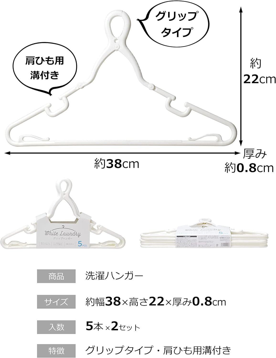 ストリックスデザイン グリップハンガー 10本 (5本×2セット) ホワイト 洗濯ハンガー White Laundry 部屋干し 室内 シンプル SB-090 【 限定】