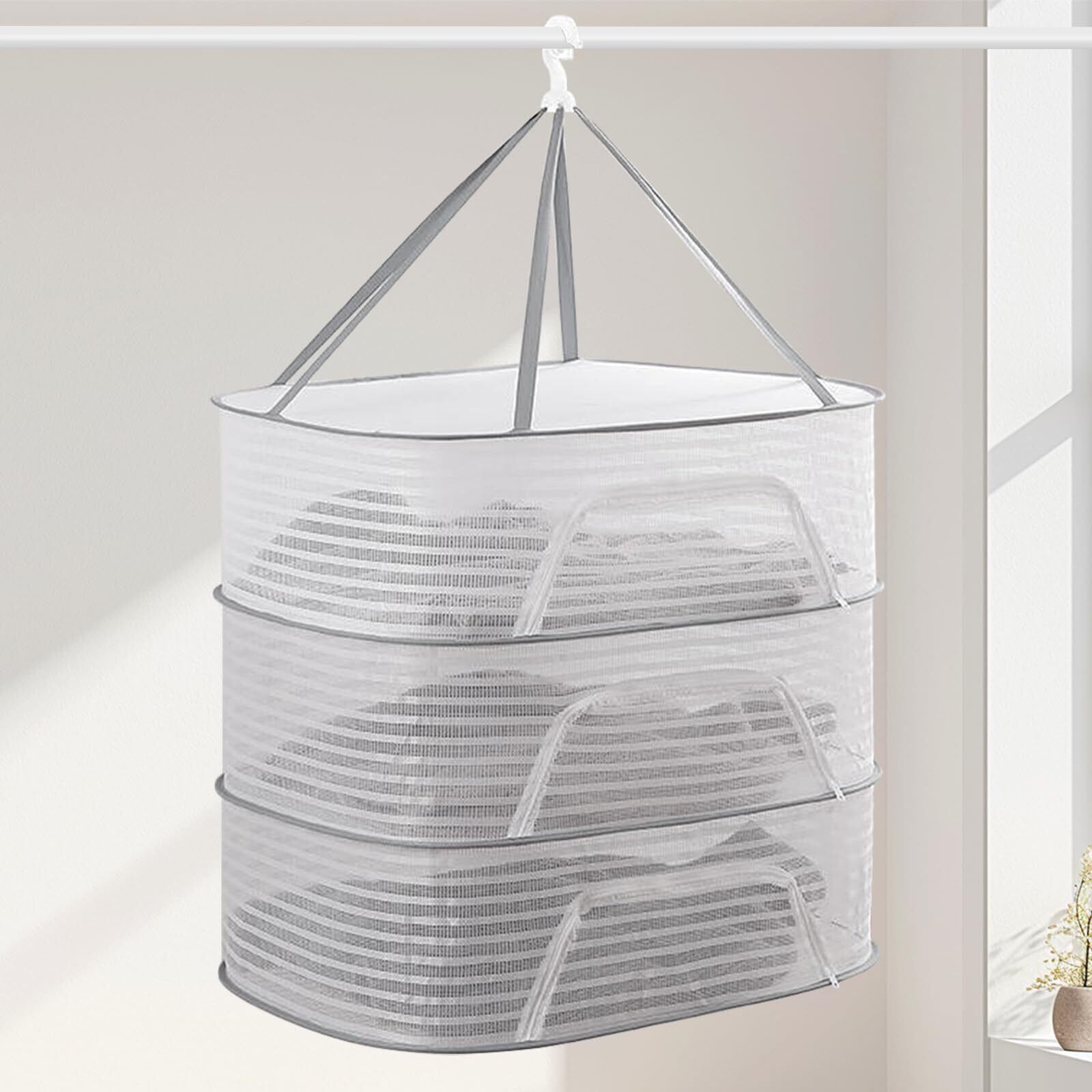 物干しネット 3段 型崩れ防止 平干しネット 折りたたみ収納 平置きネット コンパクト 防風 通気性 ニット干し 円形 干し網 野菜 果物 落下防止 衣類変形防止 吊り下げ式フック 室内 屋外 乾燥 密閉タイプ 耐荷重高い 干しネット セーター 洗濯物 干し網 コンパクト ニット ぬいぐるみ 枕 干しネット 干し芋 洗濯 干しネット 大容量 家庭用 (70*50cm)