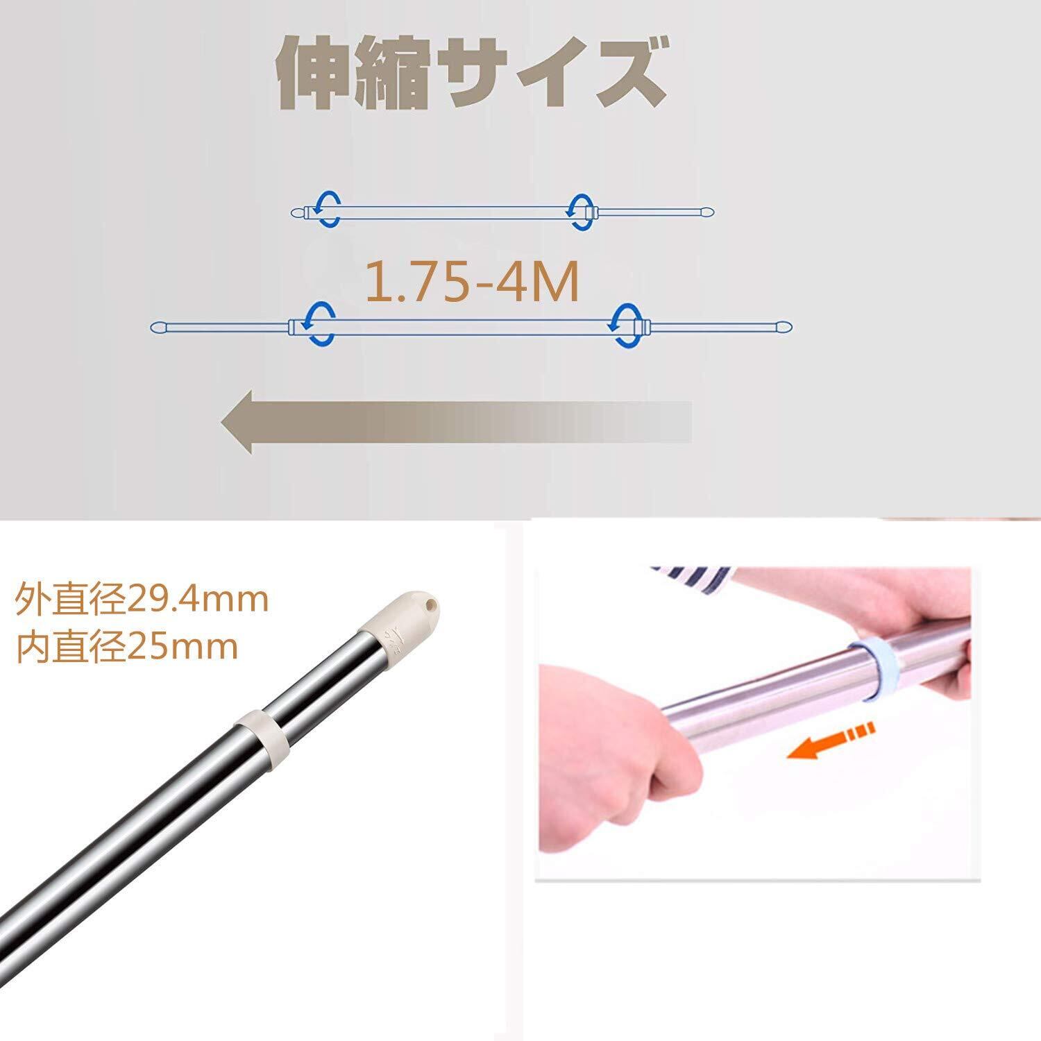 *伸縮自在:ベランダ 物干し竿サイズ 約 直径29.4mm×長さ1.75-4M 両端が伸縮できる物干し竿1.75-4m、スペースや洗濯物の量に合わせて自在に物干し竿を調節できます。コンパクトで持ち運びに便利な継ぎタイプの物干し竿です。