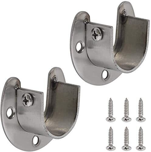 AllBright フランジソケット ロッド ポール 物干し竿 ホルダー 固定 U字型 クローゼット 2個セット (32mm)