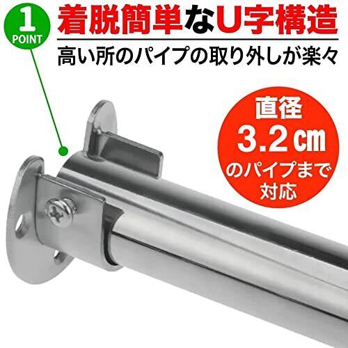 【着脱も簡単なU字構造】U字構造のためパイプの取り外しもできます。また固定用のネジも付属しているためズレや回転を防止することができますので、ぜひロッドの設置にお役立てください。