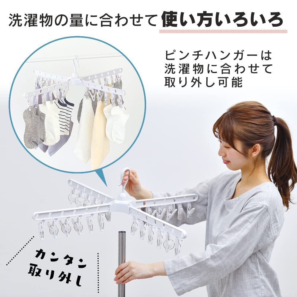 本製品にはピンチハンガーとしての機能も兼ね備えています。小物から大物まで、様々な洗濯物をしっかり固定して干すことができ、風が強い日でも安心です。これにより、洗濯の効率がアップします。