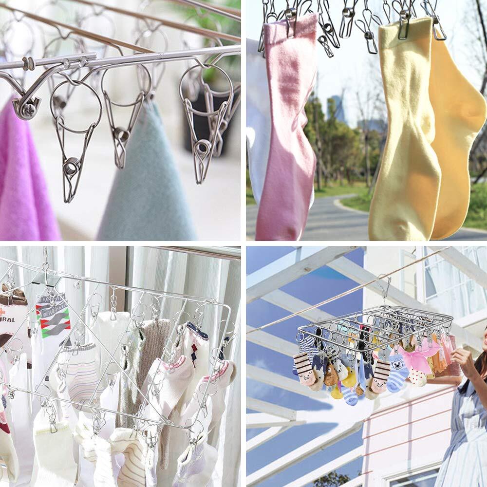 YOUXIU ピンチハンガー 52ピンチ【20個予備ピンチ付き】ハンガー 洗濯物干し ハンガー ステンレス ピンチ間隔 7cm ピンチ 折りたたみ式 収納便利 360度回転 室内干し 洗濯物干し ピンチ 錆に強い 頑丈 多機能 室内外両用 物干しハンガー 69cm×33.4cm 靴下 下着 タオルなどの小物対応