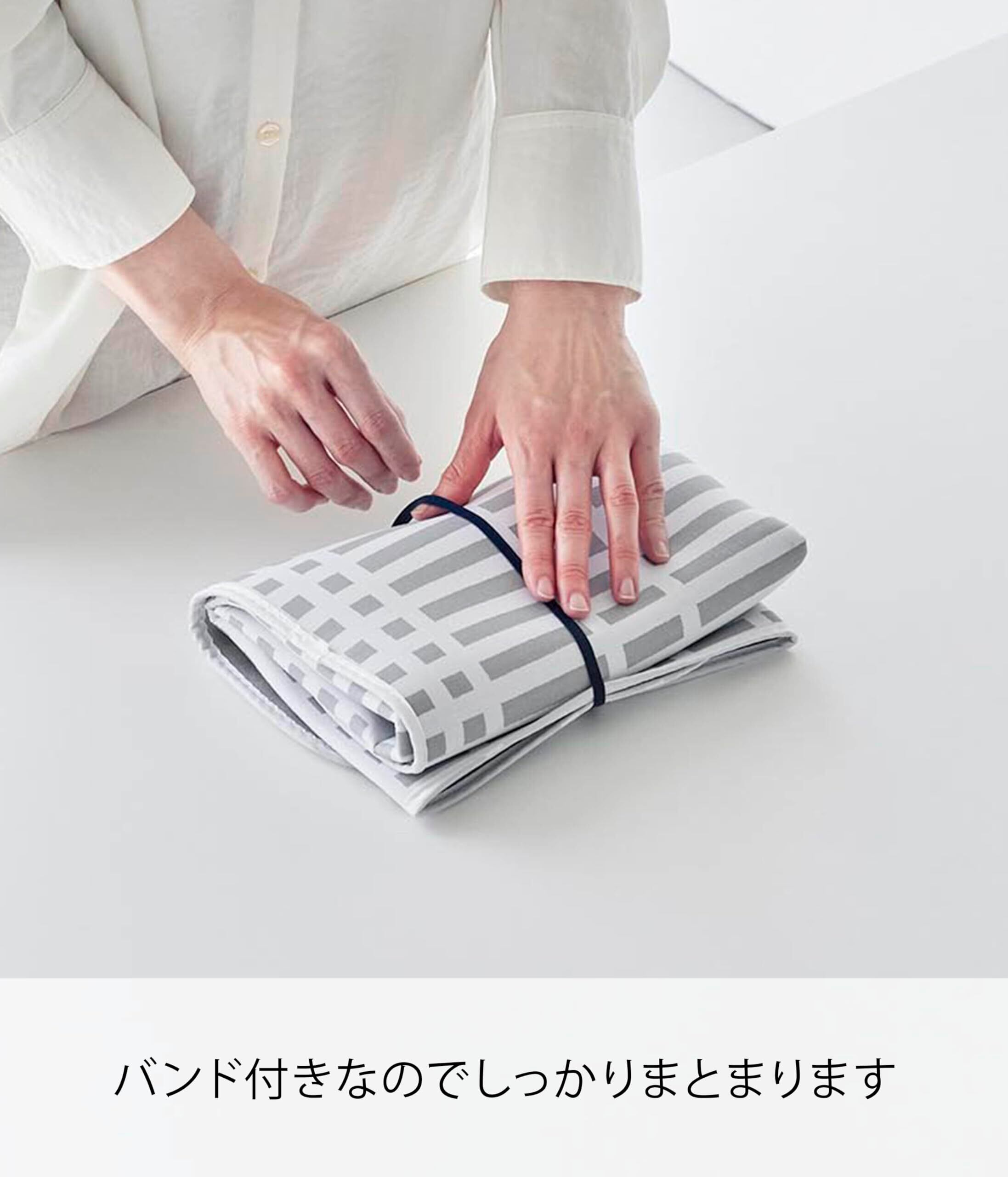 バンドつきなので小さく畳んでコンパクトにしっかりまとめられ、省スペースに収納できます。