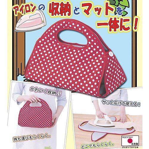 ●持ち運びラクラク! 場所をとらずにアイロンがけ! ・収納に困るアイロンのための可愛いバッグ。使い終わったアイロンを入れてうっかり火傷を防止。 ・両サイドのボタンを外せば、ハンカチなどのちょっとした小物のアイロンがけに便利なアイロン台に早変わりします。