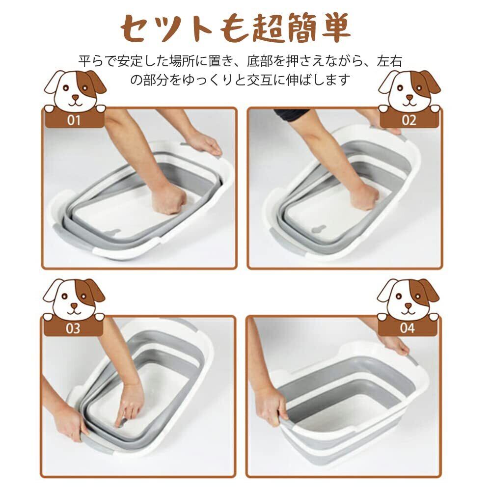 「折りたたみ たらい 洗い桶 昇級版 27L」は、家庭でのペット洗いからアウトドアの収納まで、多様なシーンで活躍する便利なアイテムです。27リットルと大容量なので、犬や猫のお風呂にも最適です!