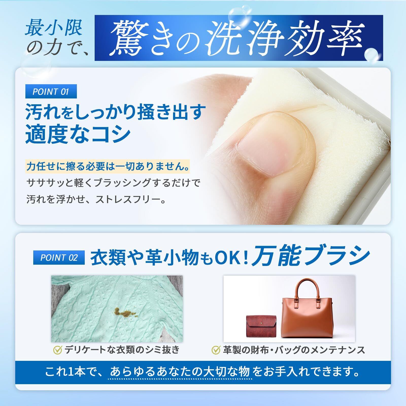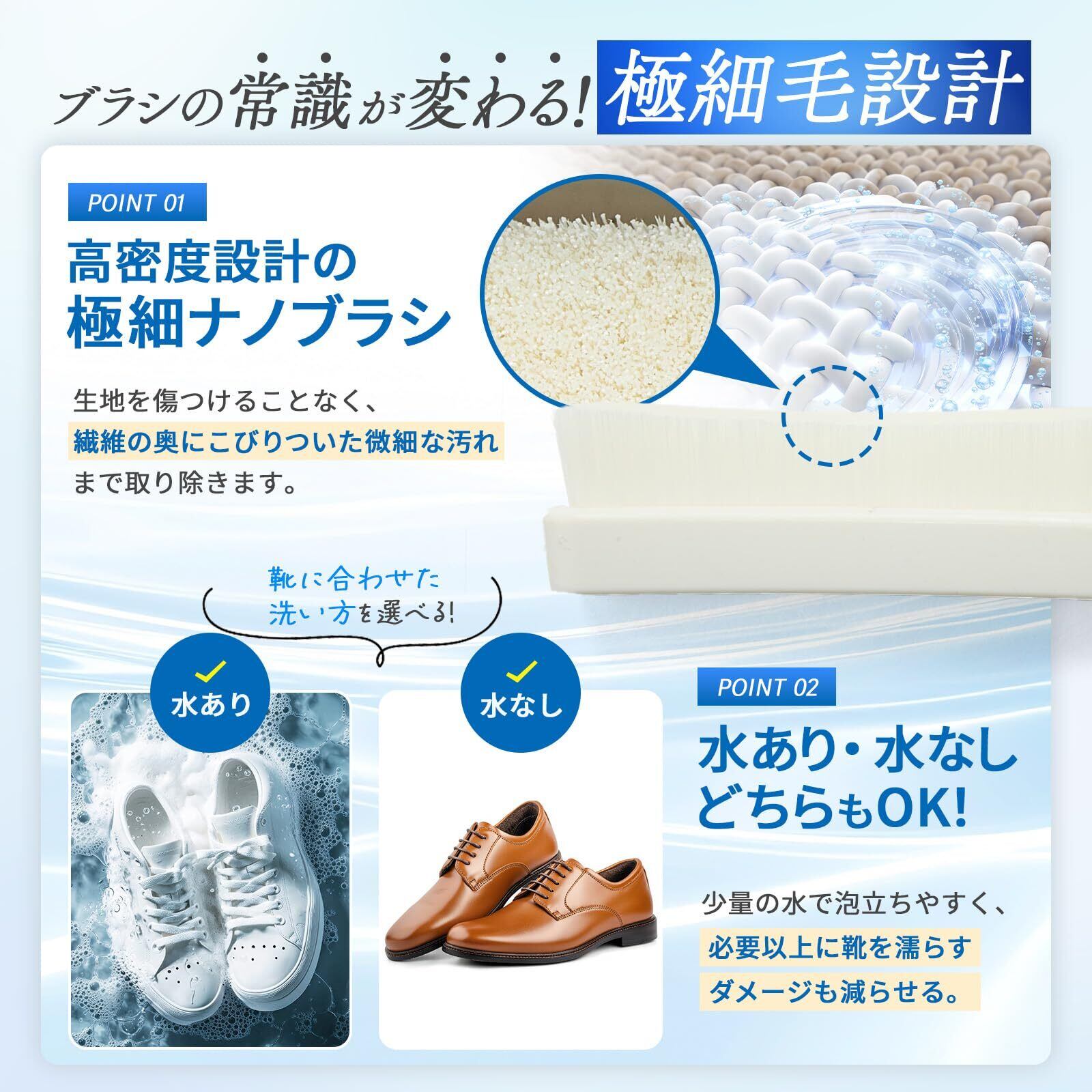 【水あり・水なし両用でいつでも手軽】 スニーカーや上履きのしっかりとした水洗いはもちろん、革靴など水を使いたくない素材のお手入れもこれ一本で対応可能です。コンパクト設計で持ち運びも便利なため、外出先で気になった汚れもその場でサッとケアできます。