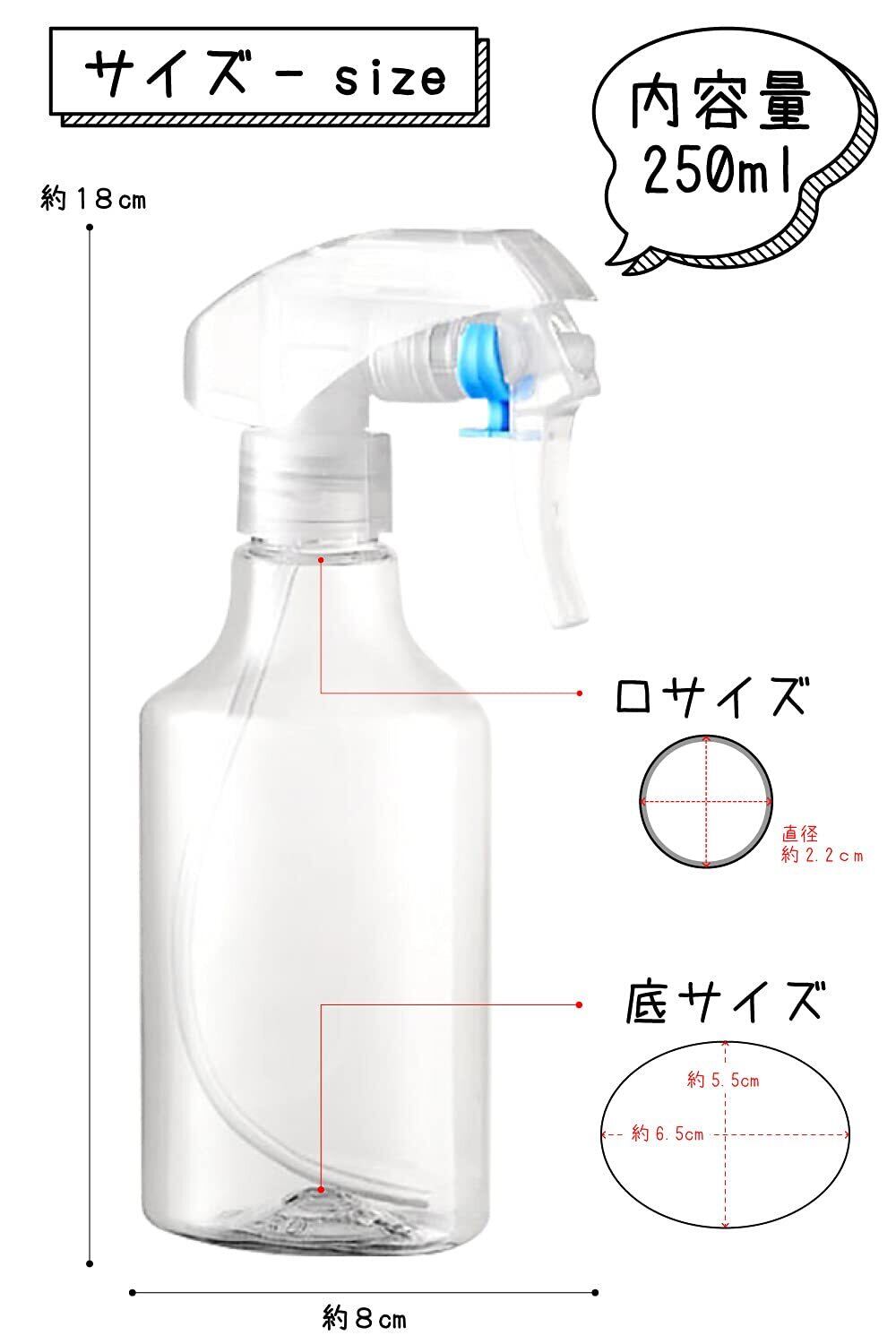 極細0.3㏄のミストを噴霧する スプレーボトル 霧吹き 250ml
