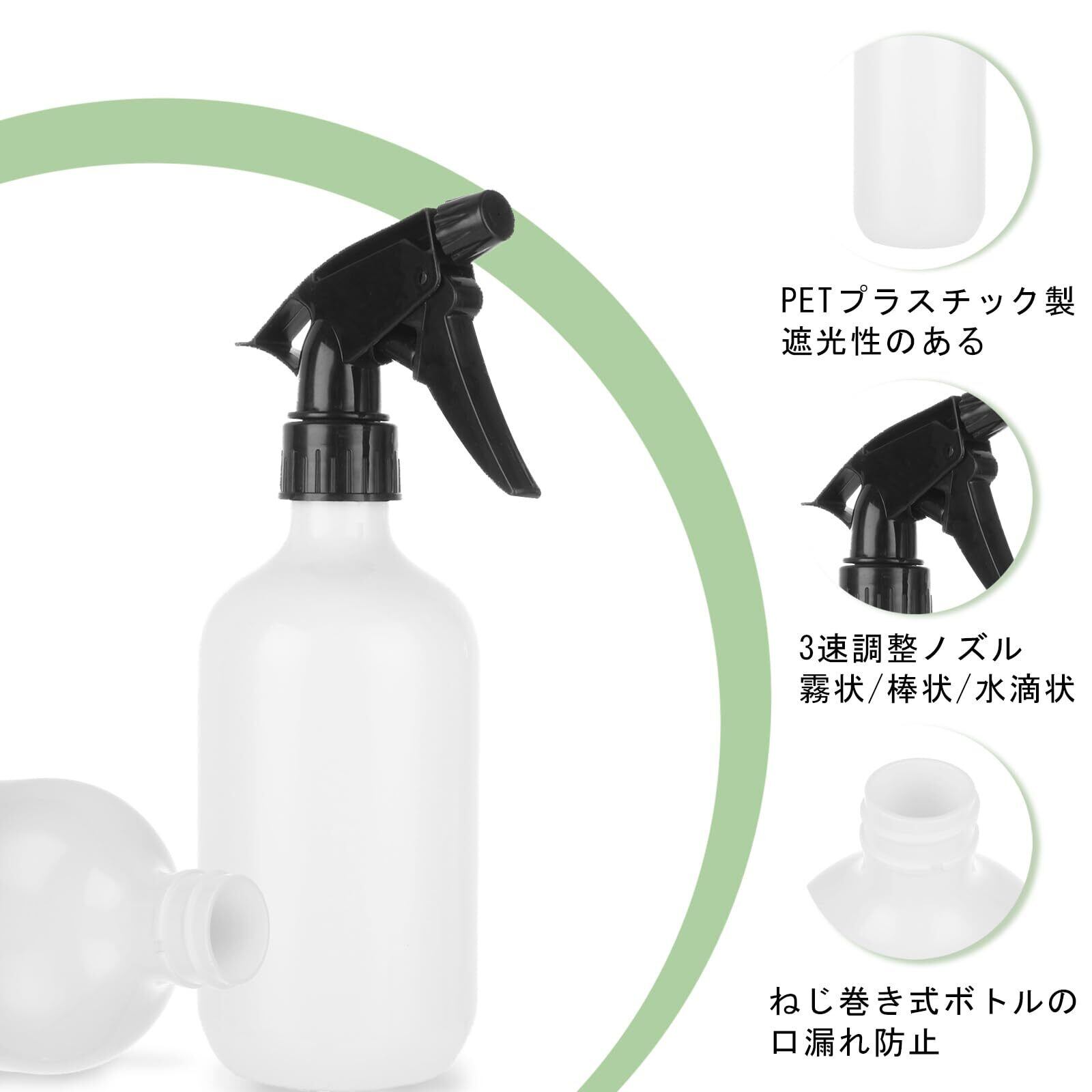 高品質の安全材質:霧吹き スプレーは耐久性のあるPETプラスチック製で、ビスフェノールA、耐薬品を含まなくて、漂白剤、酢、アルコール拭きなどの薬液に適して、長期使用にも対応しています。 安定性に優れて、丈夫で割れにくくて、理想的な溶液スプレーボトルです。