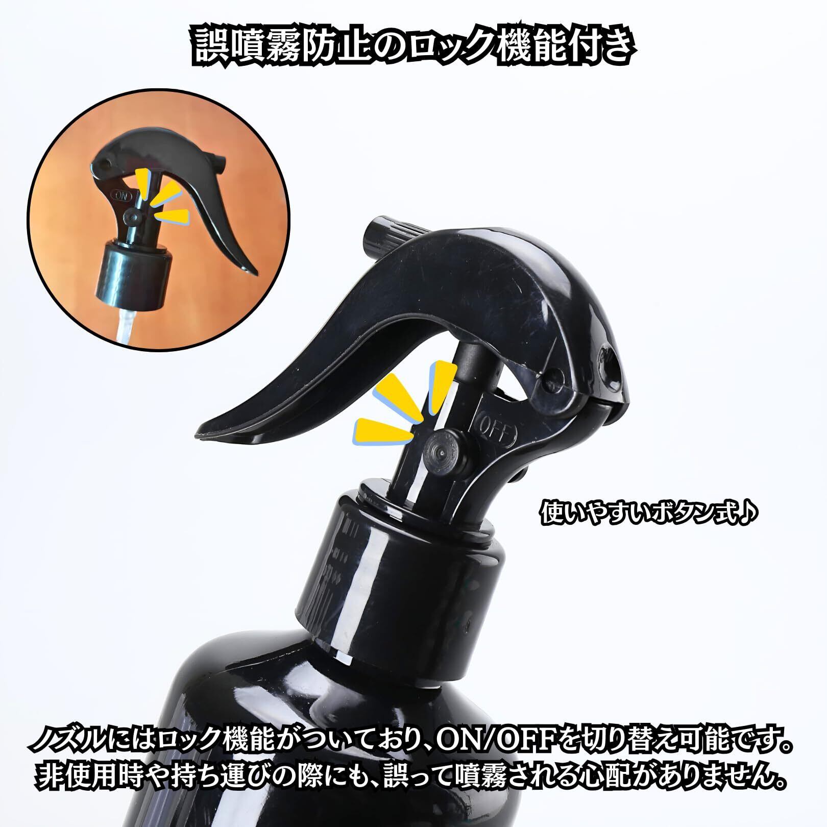 【漏れ防止・ロック機能付き】ノズル部分にはロック機能がついており、ボタン式でON/OFFを切り替えられます。非使用時や持ち運びの際にも、誤って噴霧してしまう心配がありません。